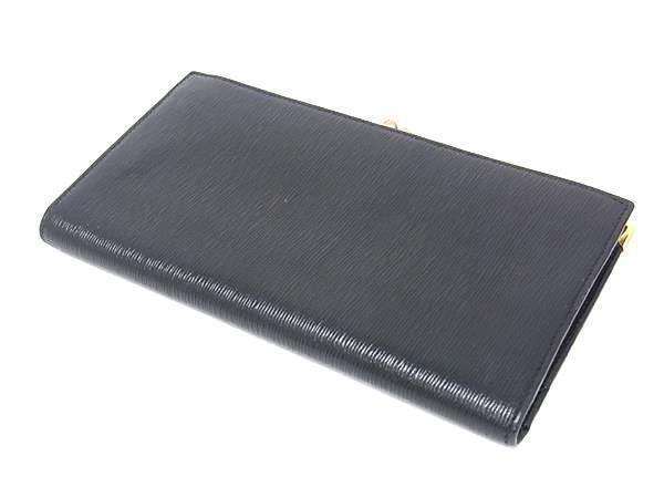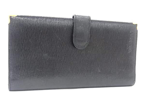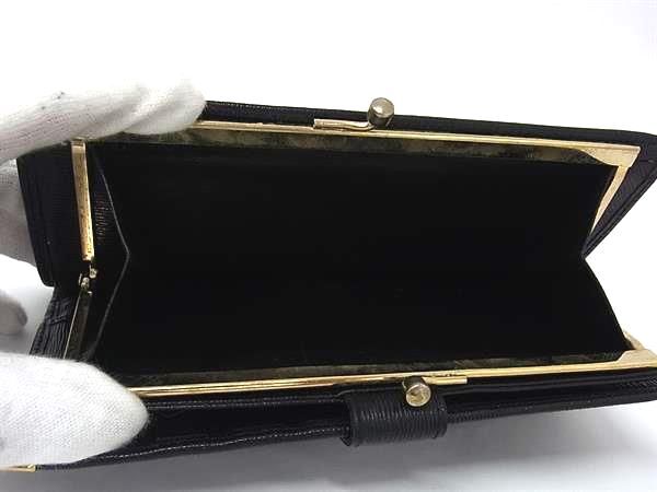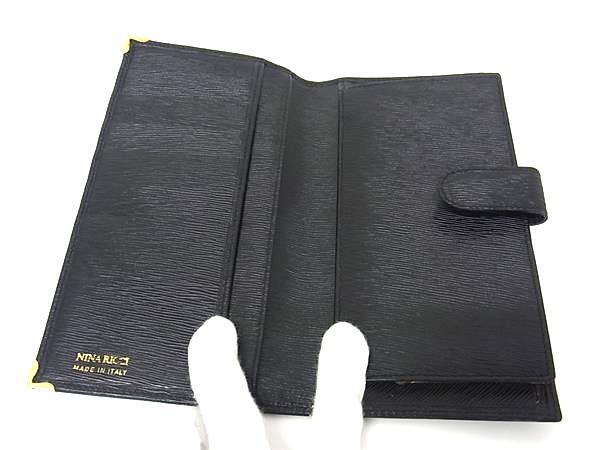■美品■ NINA RICCI ニナリッチ レザー 二つ折り がま口 長財布 ウォレット 札入れ 小銭入れ レディース メンズ ブラック系 DI6789