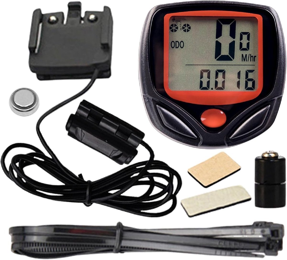 速度 や走行距離などを計測できる有線タイプのサイクルコンピューター(計測器)になります。 防水仕様で雨の日も安心して使用できます。7種の機能が付いており、自転車に乗る楽しみが更に増すはずです! 機能1:速度計(現在の速度)機能2:積算距離(今まで走行した距離)機能3:走行距離 機能4:最高速度(今までに出したMAX速度の記録)機能5:平均速度 機能6:走行時間 機能7:時計(現在時刻)取付けはモニターをハンドル部分など見えやすい位置に取付け、マグネットをスポーク部分に取付け、センサーをフロントフォークに取付するだけです。このメーターを使用して遠くまでサイクリングしよう!●仕様 使用電池:本体-ボタン電池×1個※電池付属日常防水●セット内容モニター本体×1個センサーとホルダー×1個マグネット×1個固定バンドの束LR44×1 サイズ・特徴 ●セット内容モニター本体×1個センサーとホルダー×1個マグネット×1個固定バンドの束LR44×1 スピード、距離、累計距離、走行時間、時計、等多くの機能性です。日本語説明書付きで安心♪