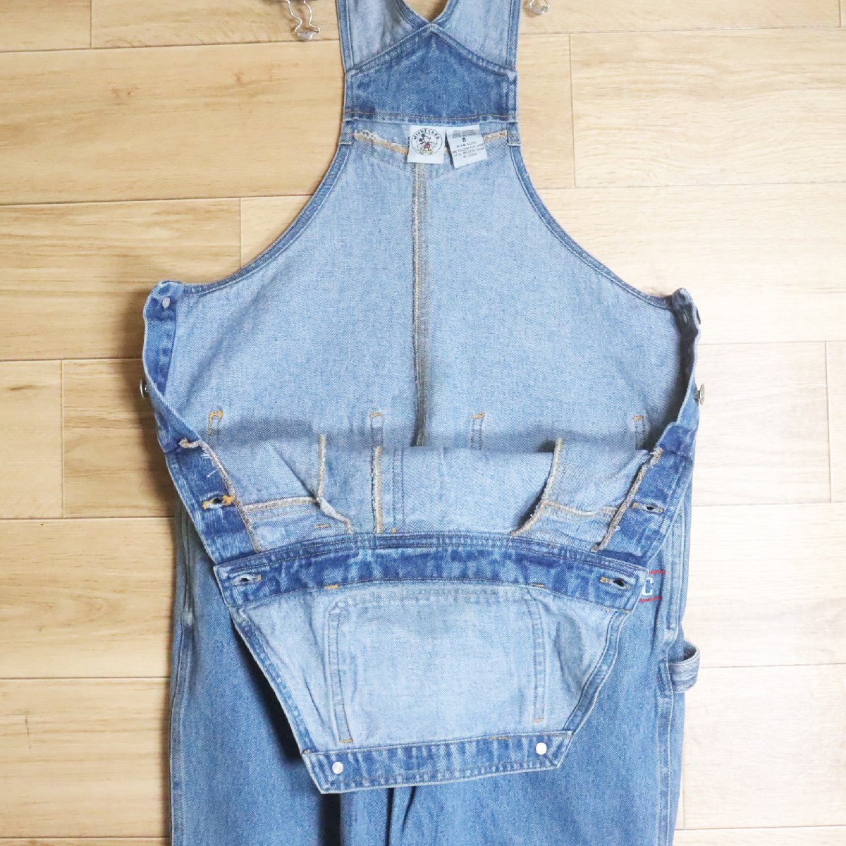 実寸はウエスト72センチ、胸当て上端から股まで47センチ、股下54センチ、ワタリ29センチ、裾幅17センチになります。