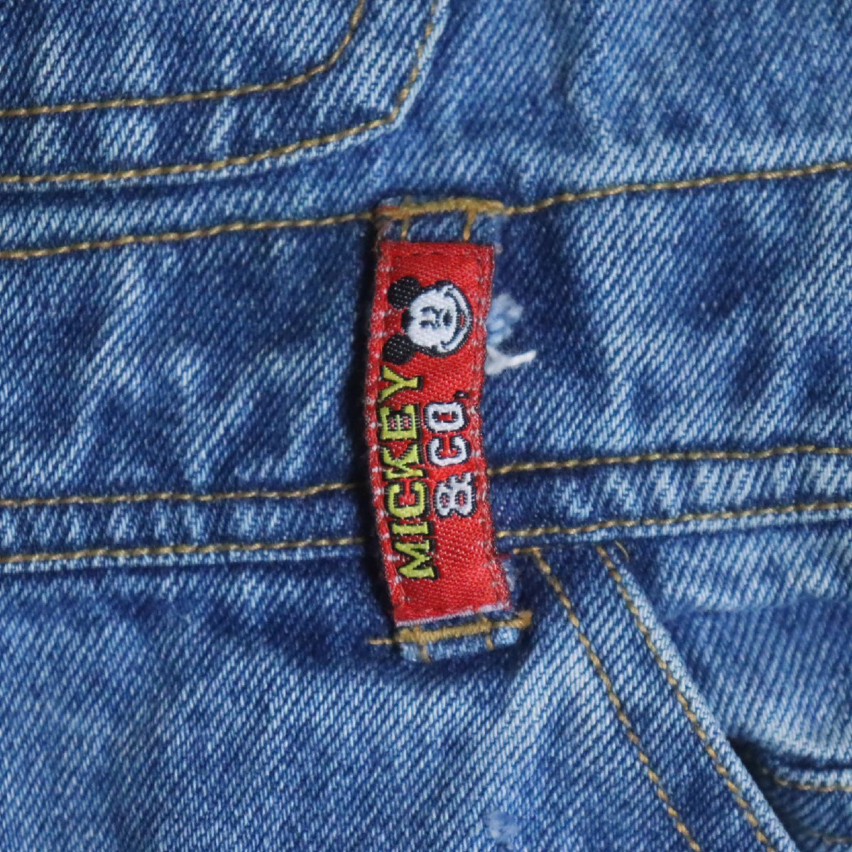 D1R/R5.13-5 Disney ディズニー MICKEY MOUSE ミッキーマウス オーバーオール デニム サロペット 刺繍 キッズ アメリカ古着