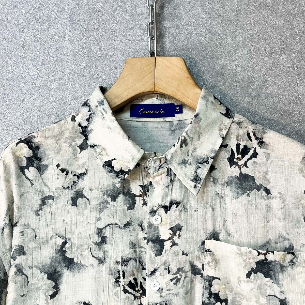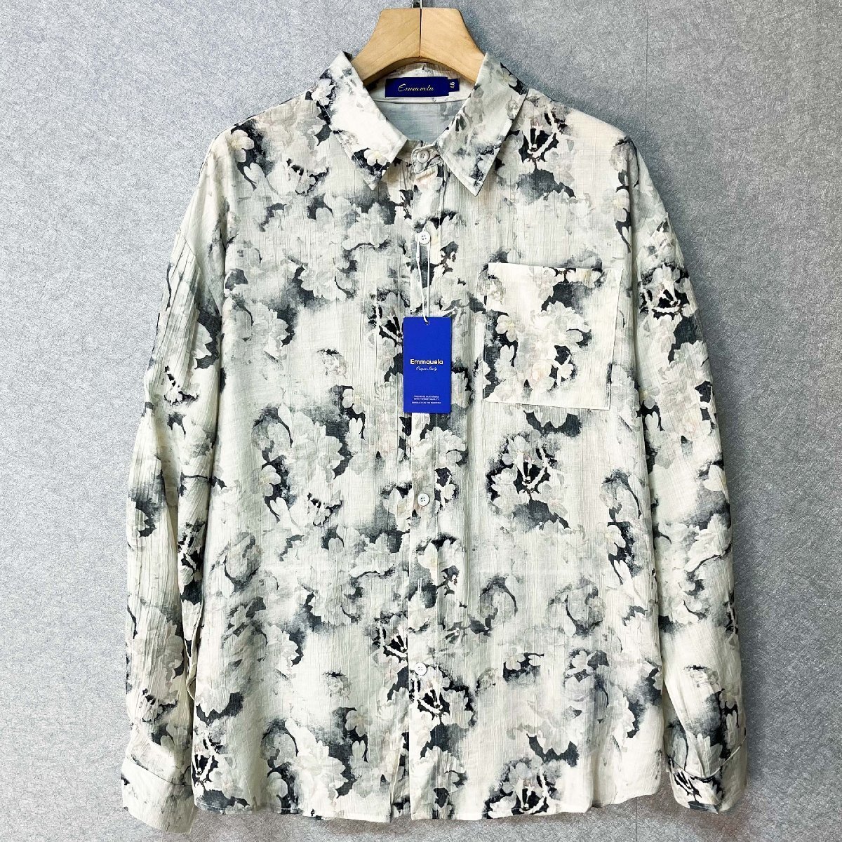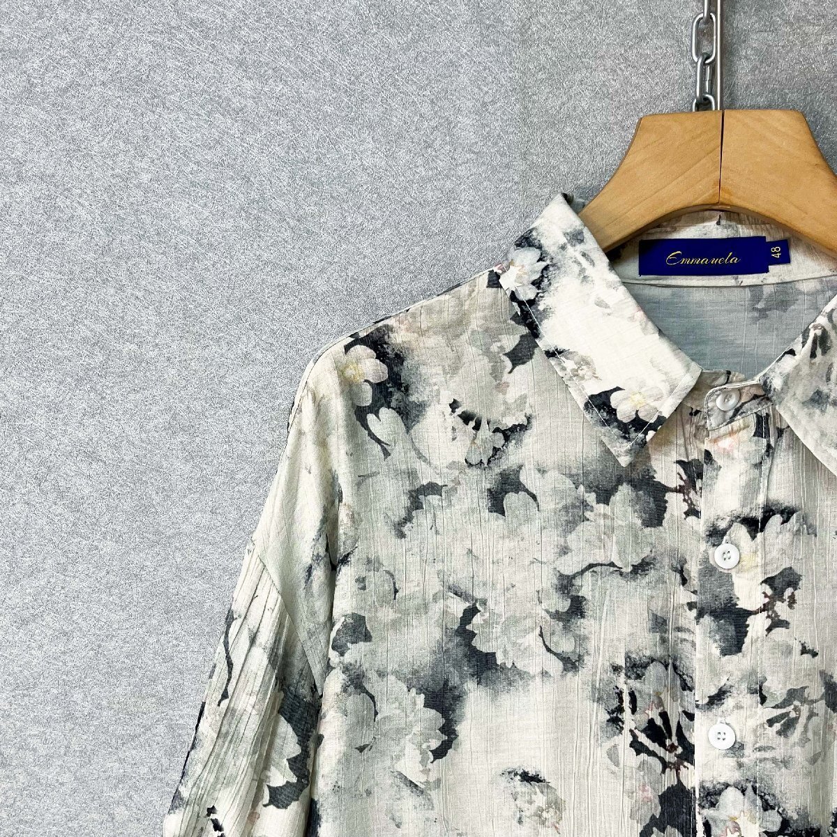 上級・長袖 シャツ 定価4万◆Emmauela・イタリア・ミラノ発◆リネン混 ゆったり 総柄 オシャレ トップス アロハシャツ カジュアル 日常 M