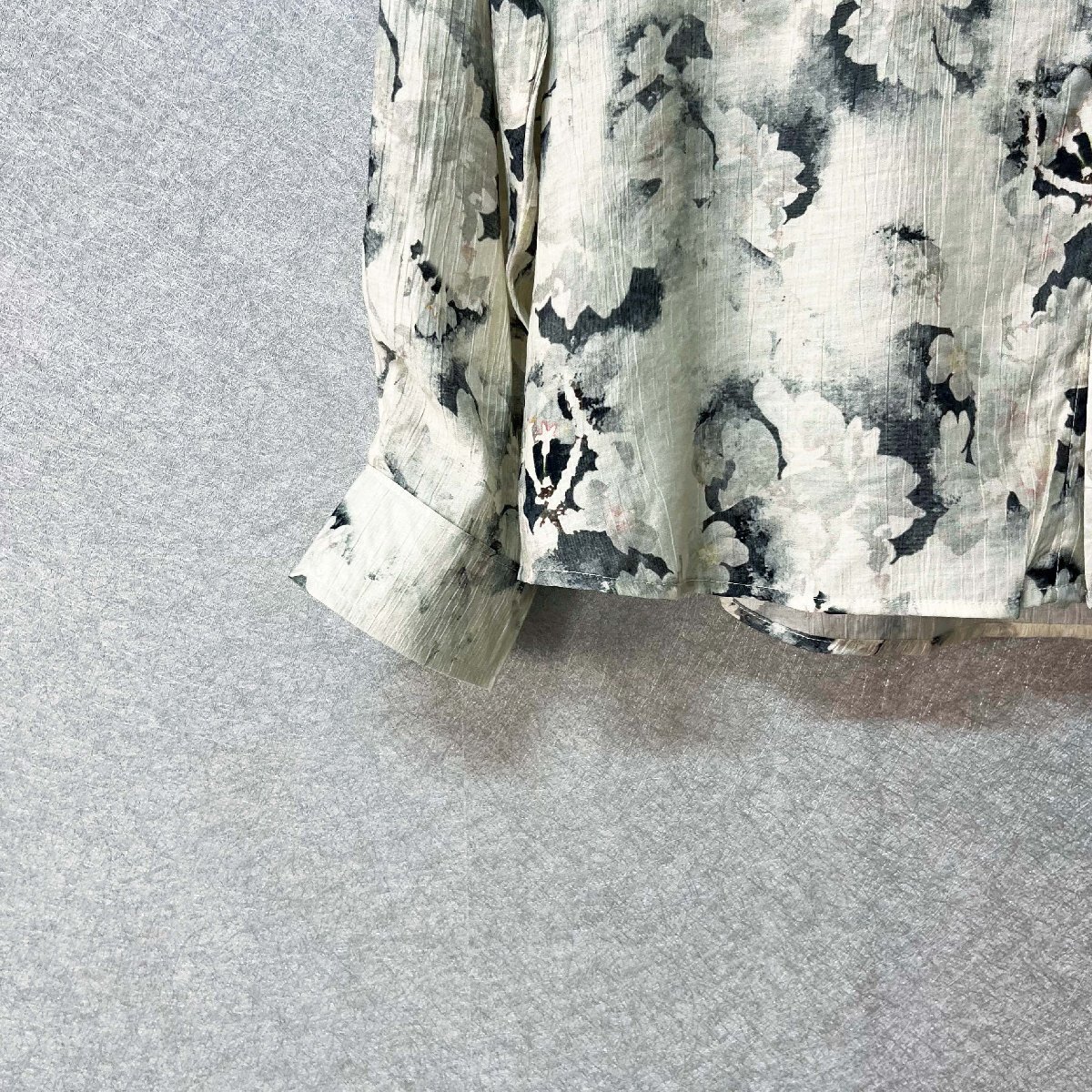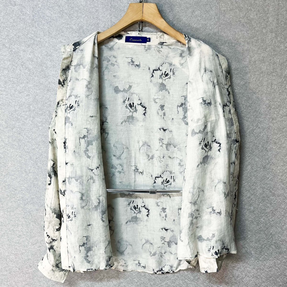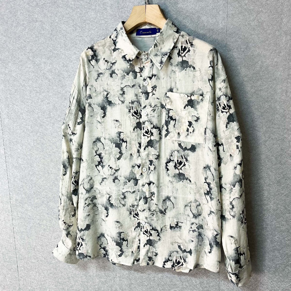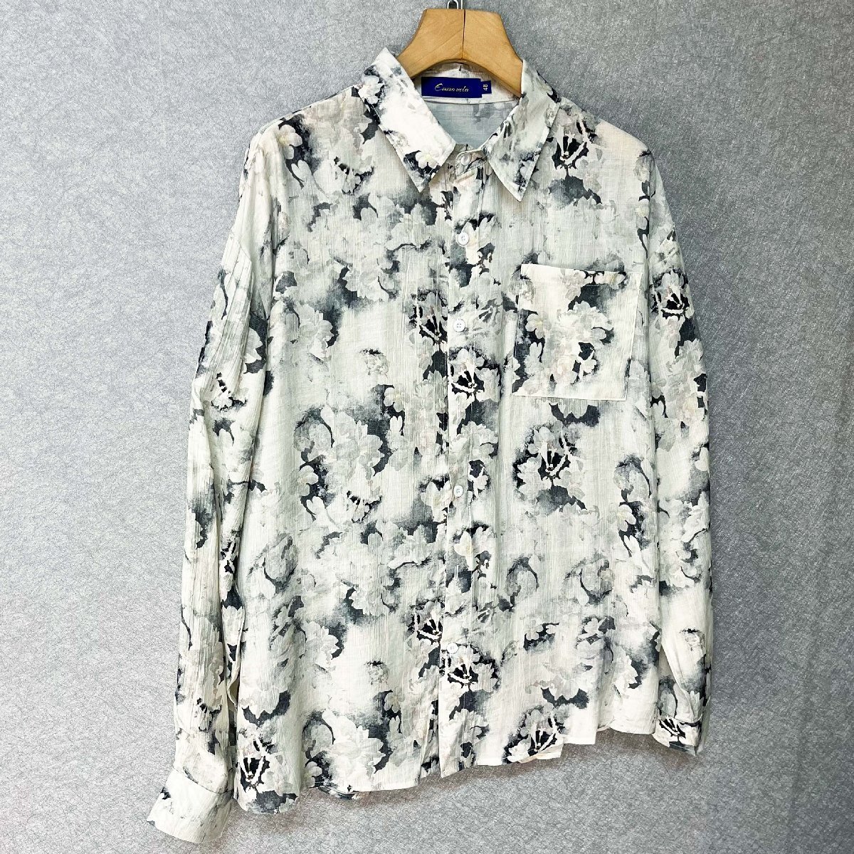 上級・長袖 シャツ 定価4万◆Emmauela・イタリア・ミラノ発◆リネン混 ゆったり 総柄 オシャレ トップス アロハシャツ カジュアル 日常 M