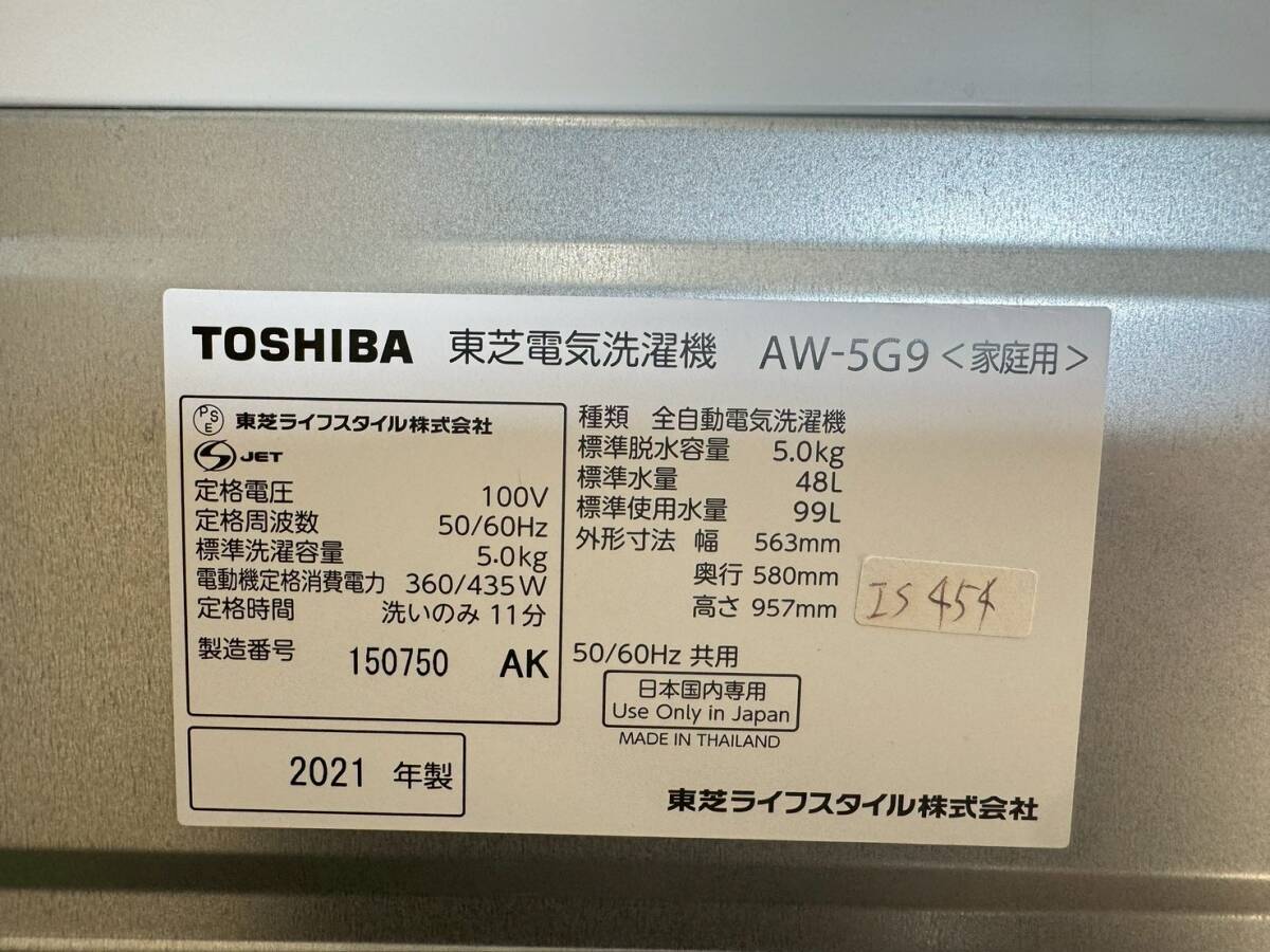 大阪送料無料★3か月保障付き★洗濯機★東芝★5kg★2021年★AW-5G9★IS-454