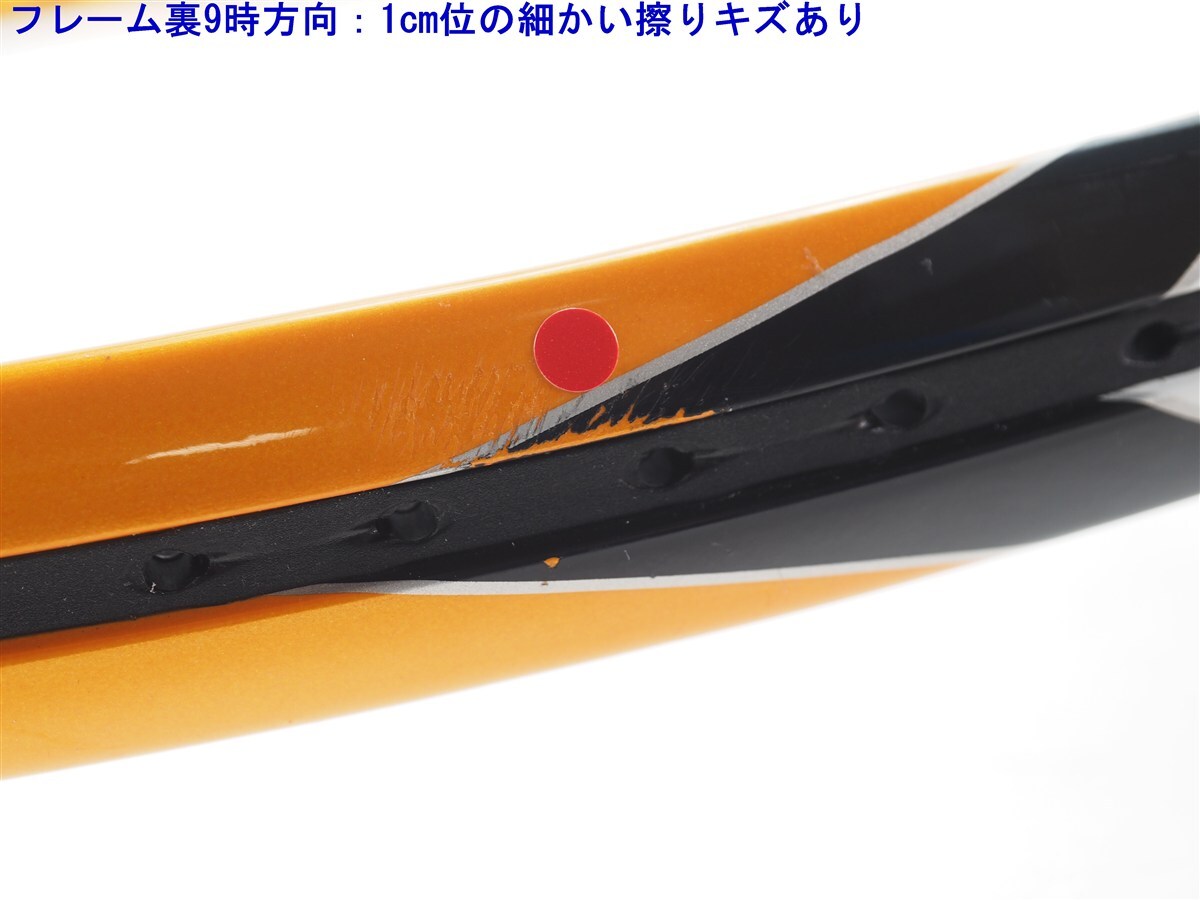 フレームには大きな目立つようなキズはありません。両サイドに細かい擦りキズが数か所ありますが、ラケット全体的には状態が良いラケットです。