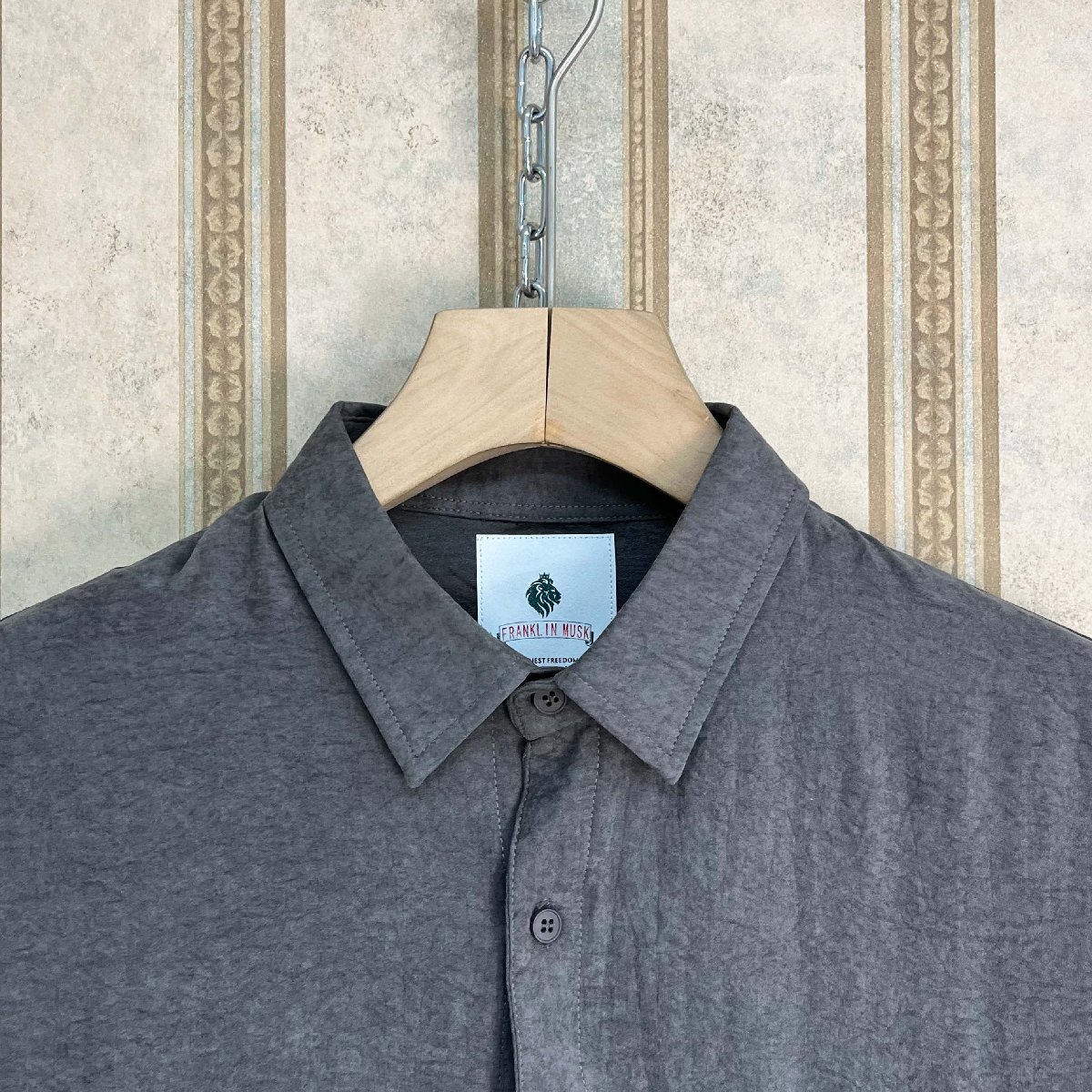 定番 定価4万 FRANKLIN MUSK・アメリカ・ニューヨーク発 長袖シャツ 薄手 速乾 ソフト 無地 ゆったり 折り襟 トップス ビジネス 紳士 サイズ1