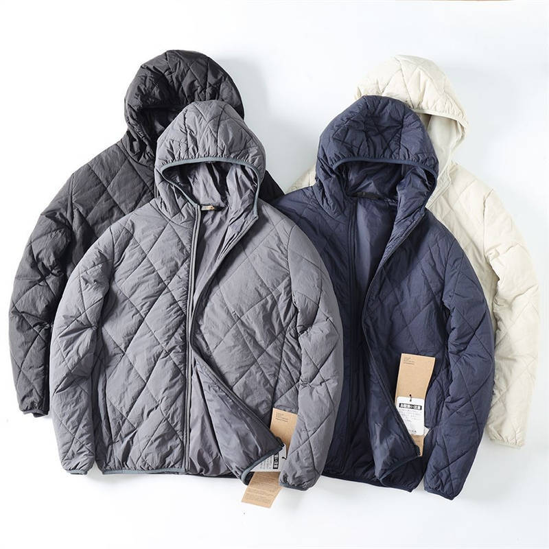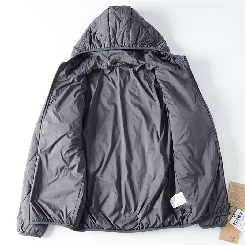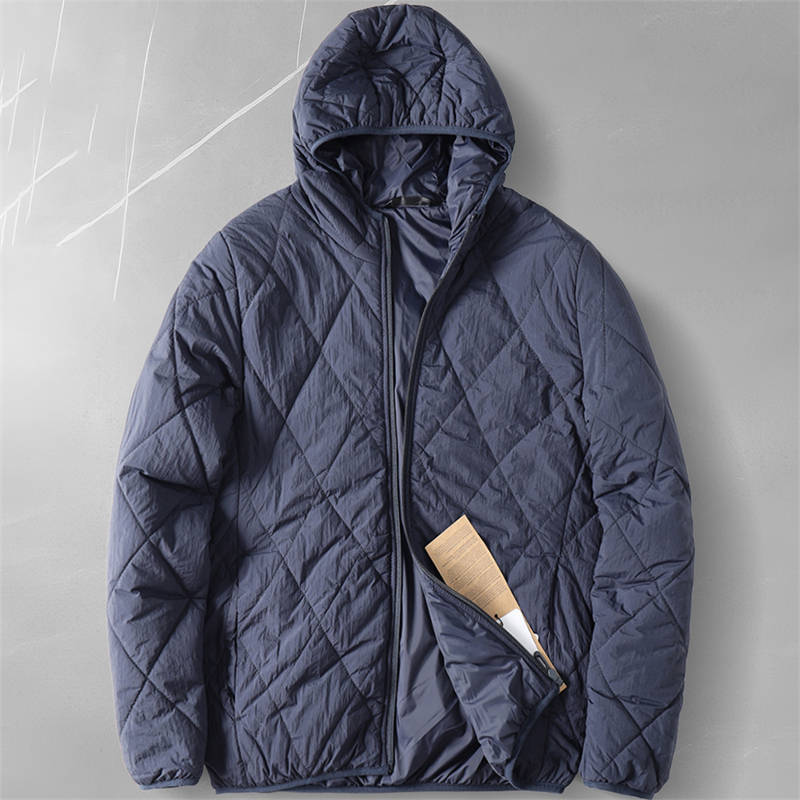 2420-3XL紺色 中綿ジャケット メンズ シルク フード付き 新品 厚手 冬 防寒 軽量 暖かい 撥水 蓄熱保温 キルティング カジュアル アウター
