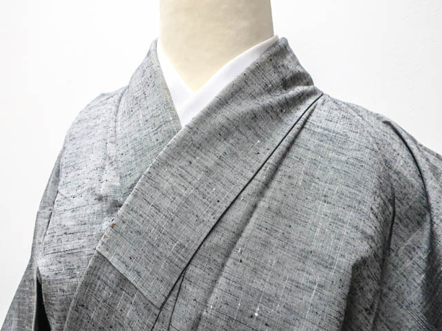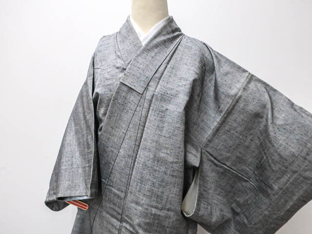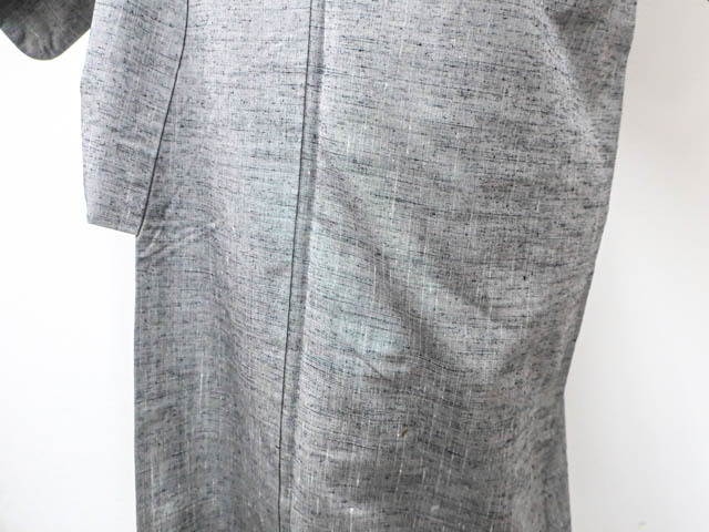 リサイクル商品のため、胴裏にしみがございます。表所々シミ汚れがございますが着用可能なお品です。 地色は 灰 です。 1枚目の画像が近いお色かと思われます。 素材は正絹です。 |