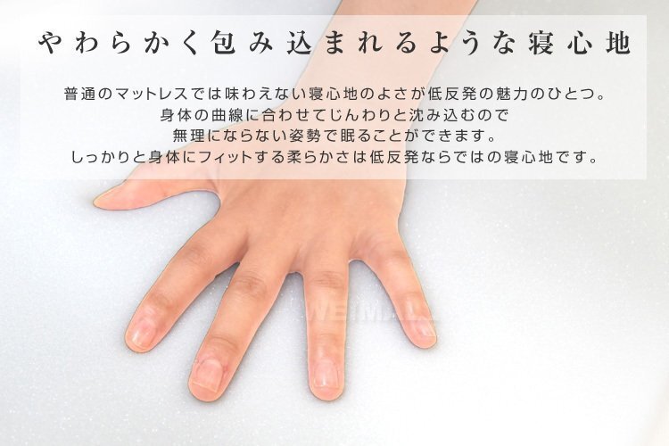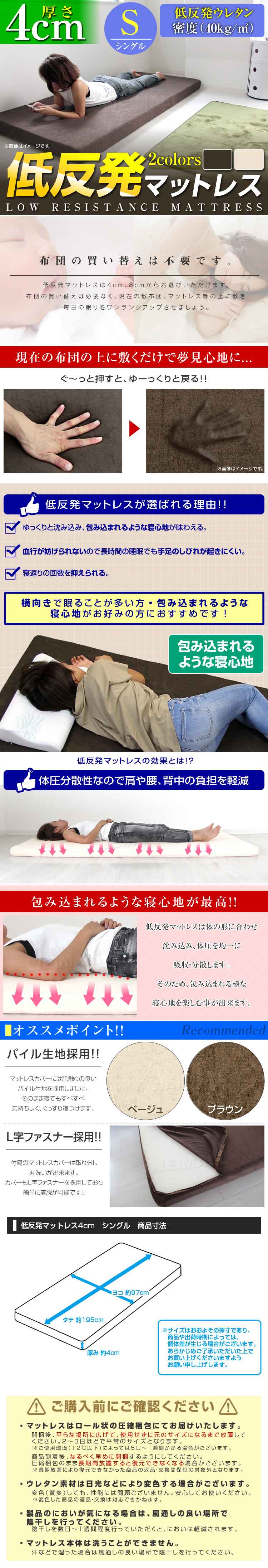 | 一枚取り入れるだけで、じんわりやわらかな夢の寝心地を実現する低反発マットレスです♪ 厚さ4cmあるので、マットレスや敷き布団の上に敷いて使用すると、 包み込まれるような寝心地で、より快適な睡眠を取ることができます。 取り外しやすいL字ファスナー付き洗えるカバーが付属しています! 【商品仕様】 カラー:ブラウン サイズ(約):幅97cm×長さ195cm×厚み4cm(シングルサイズ) 梱包サイズ(約):(約)52×26×26cm 重量(約):(約)3.2kg 素材:低反発ウレタン(密度40kg/m3) 、パイル生地 他 ※耐熱仕様ではございませんので、電気毛布との併用はおやめください。 (マットレス シングル セミダブル ダブル 高反発 低反発 高反発マットレス 低反発マットレス 4cm 8cm 10cm シングル 高反発マット 低反発マット マット ベットマット ベッド 敷き布団 洗える カバー 寝具 人気 おすすめ ) |
