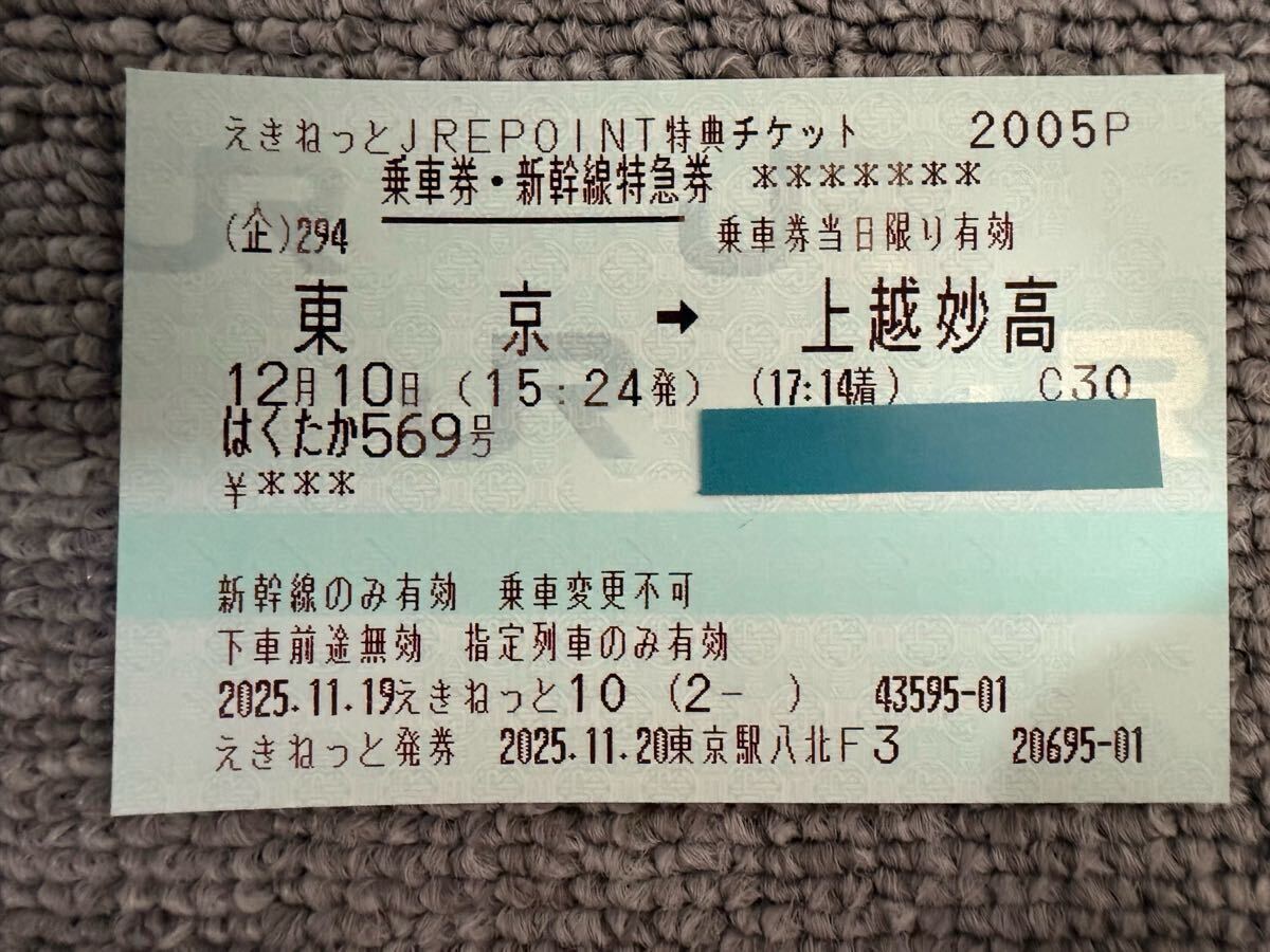 東京→上野→大宮→高崎→軽井沢→長野→飯山→上越妙高