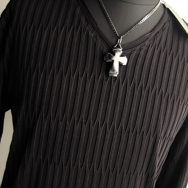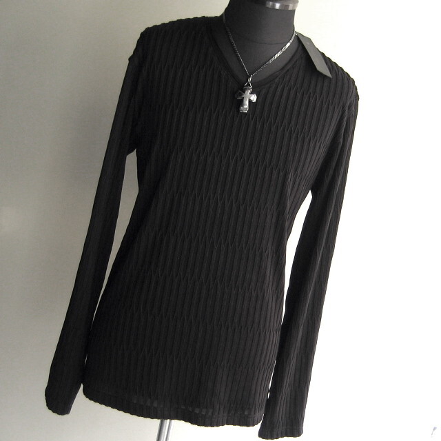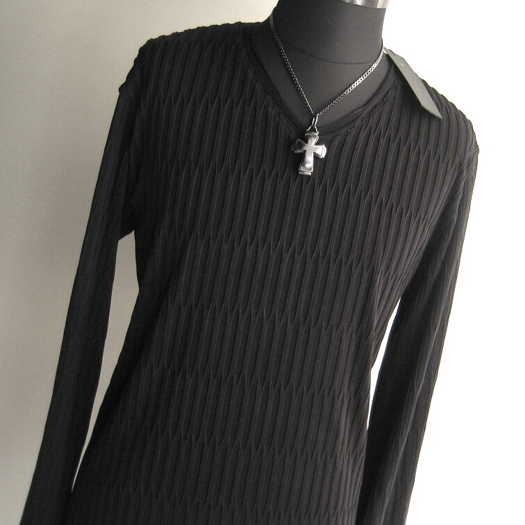 1.7万 新品 L トルネードマート タックストライプジャガードVネックカットソー長袖 インポート生地 ブラック 送料無料 サンプル 748