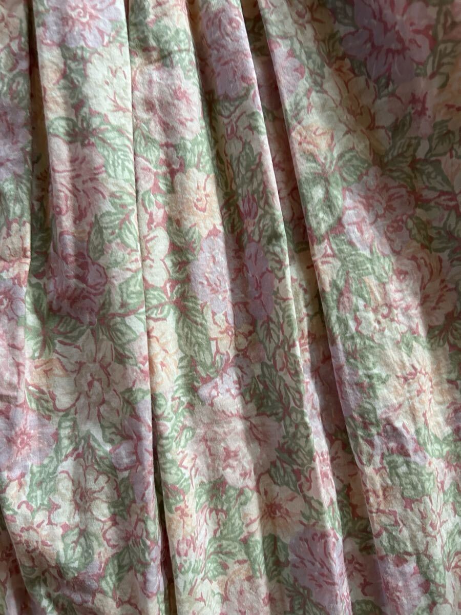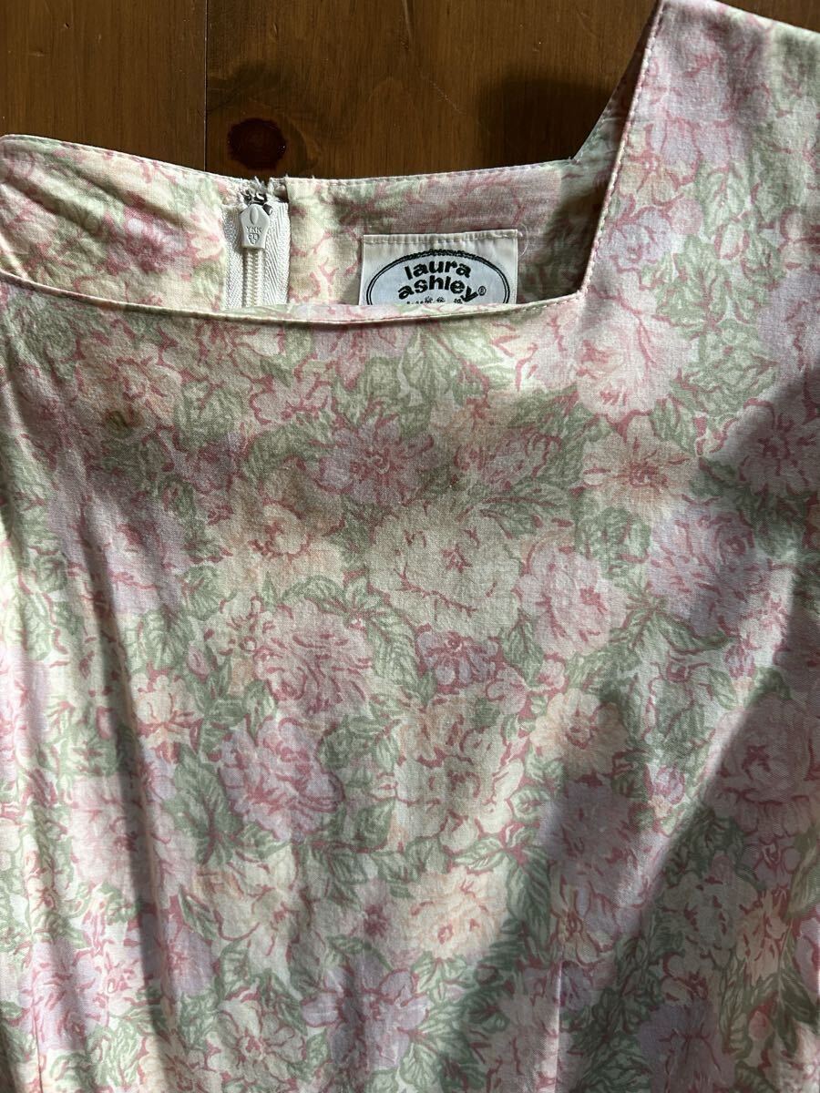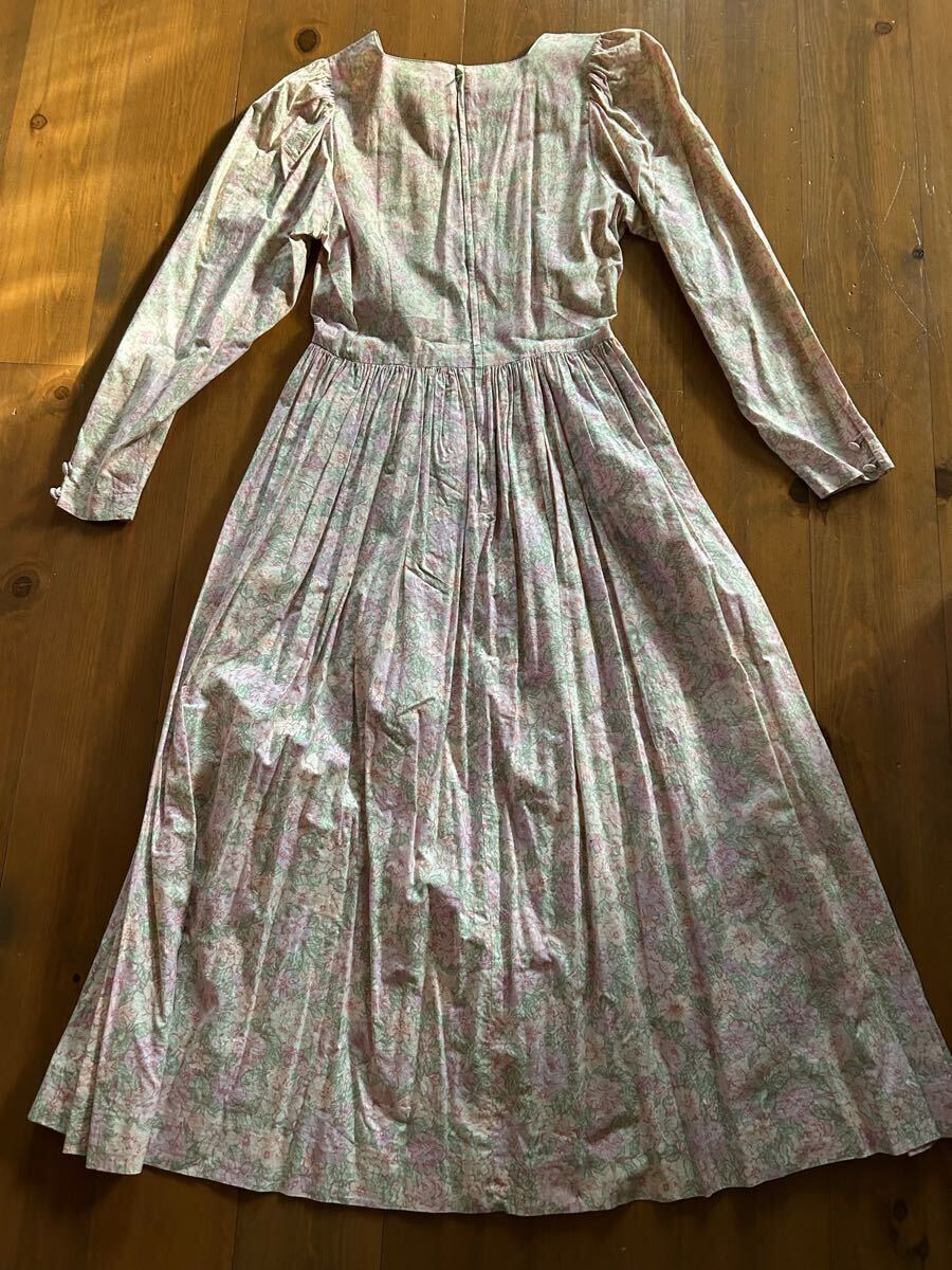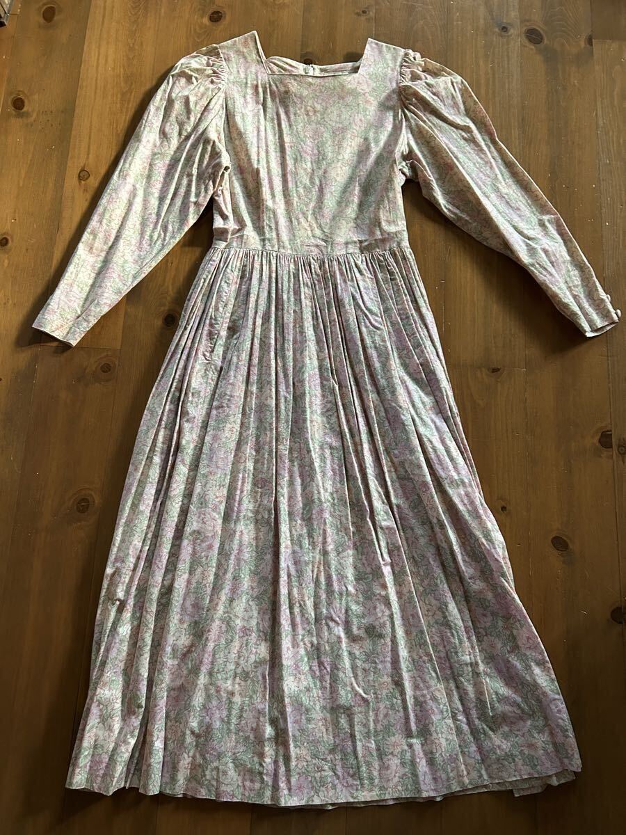 ローラアシュレイのピンク花柄ワンピースです。サイズはバスト約41センチ、着丈約114センチです。素材は表示がないのですが綿だと思います。ノークレーム・ノーリターンでお願い致します。