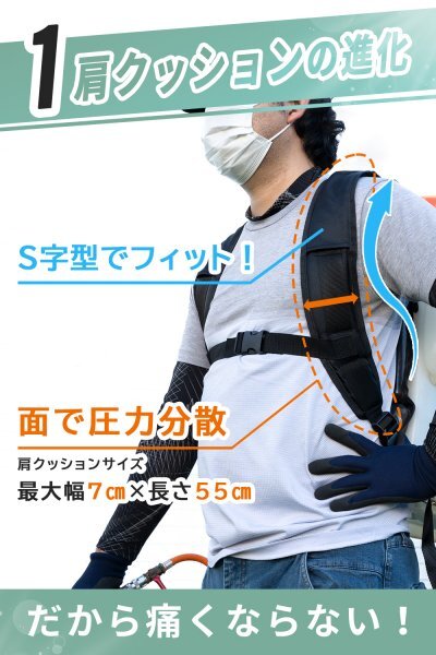 【耐荷重40㎏/ラージクッション】 背負いベルト 背負子 噴霧器 散布機 刈払機 ベルト バンド 背負い機械用ベルト チェストベルト付 1組