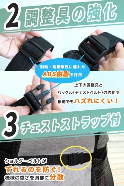 チェストストラップ付付き背負い機械用交換ベルト ラージクッションです。