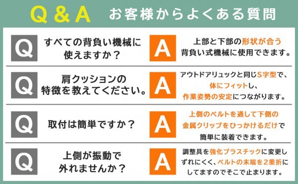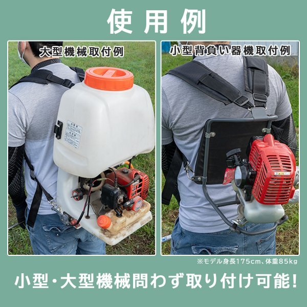 【適応背負い機械】動力噴霧器、背負式噴霧器、背負動力噴霧機、除草剤散布機、背負い式肥料散布機、背負い式携帯型集塵機、背負い式草刈り機、背負い式エンジン草刈機、背負い式電源などに対応。※背負式でない肩掛け式エンジン刈払機には使用不可です。