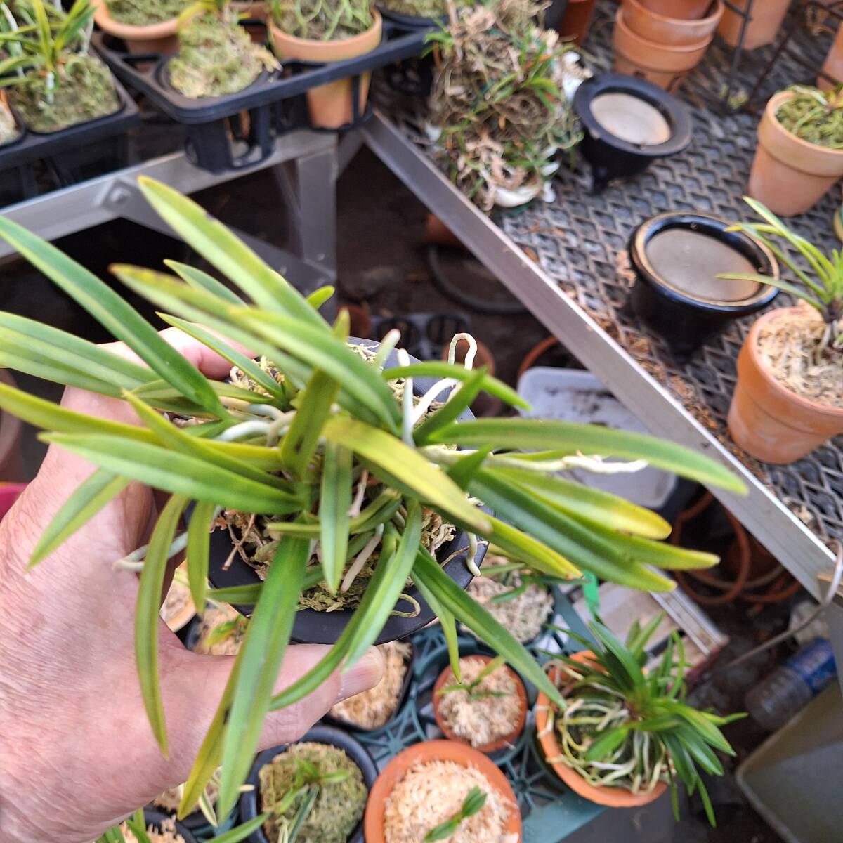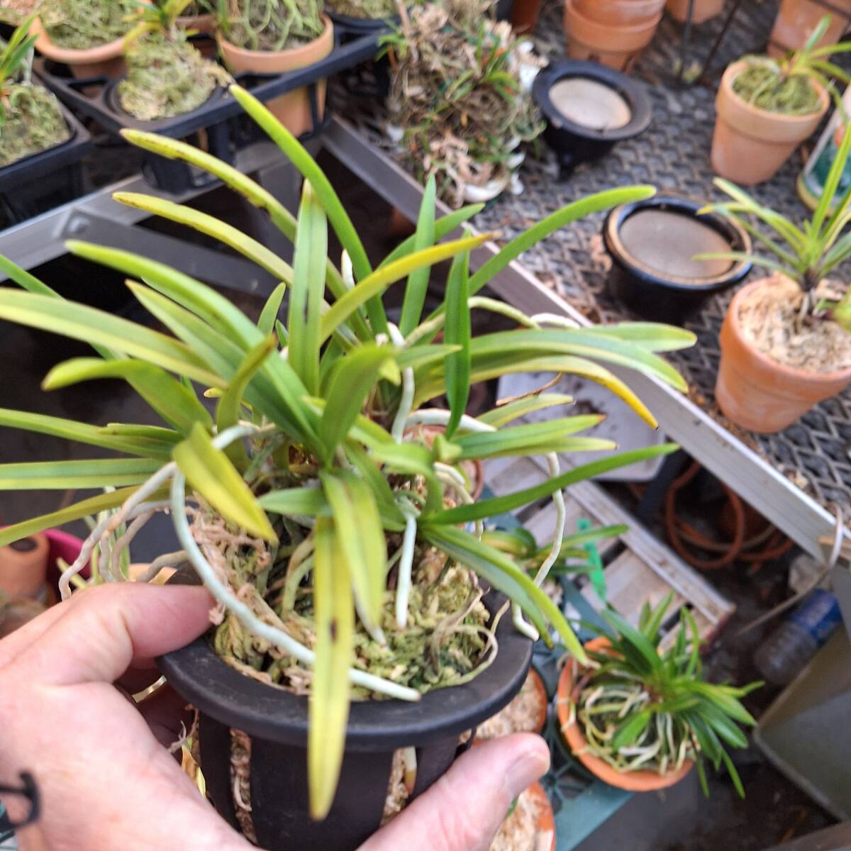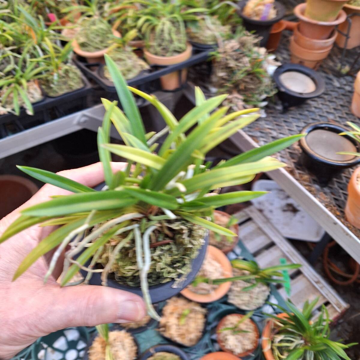 富貴蘭 島根県産 無名虎株立ち。作っていますと縞が出ます。 発送は鉢から抜きまして苔巻きでの発送になります。宅急便着払い、ゆうパック等です。