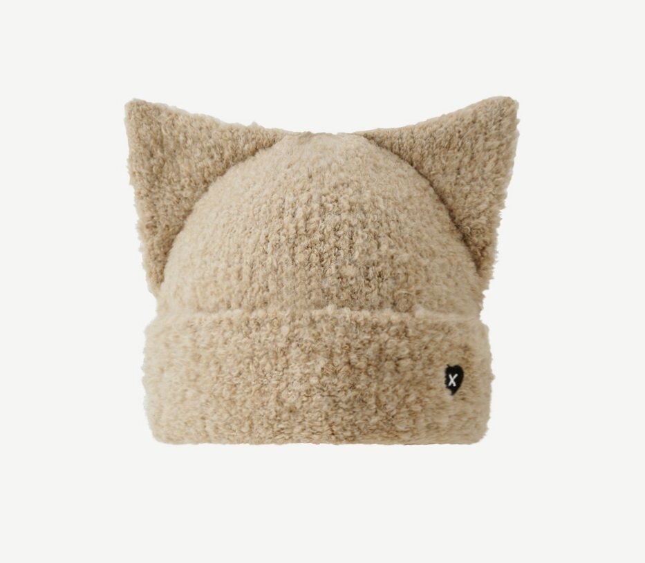 かわいい 猫耳ニット帽 ベージュ レディース ウール 秋冬 暖かい 耳保護 ニット 帽