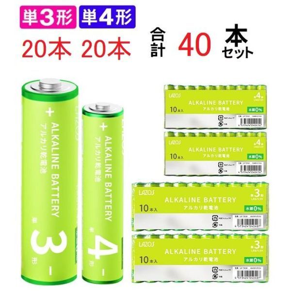 アルカリ乾電池 単3x20本、単4x20本 1.5V【合計40本セット】 単3 単4 アルカリ 電池 乾電池 単3電池 単4電池 LAZOS