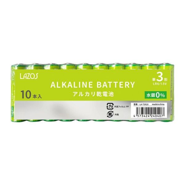 【Lazos単3アルカリ乾電池】LA-T3X10 x2パック・水銀0・1.5V