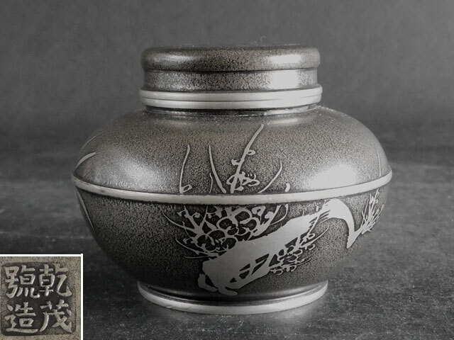 乾茂號造 錫 四君子 茶壺 茶入 煎茶道具