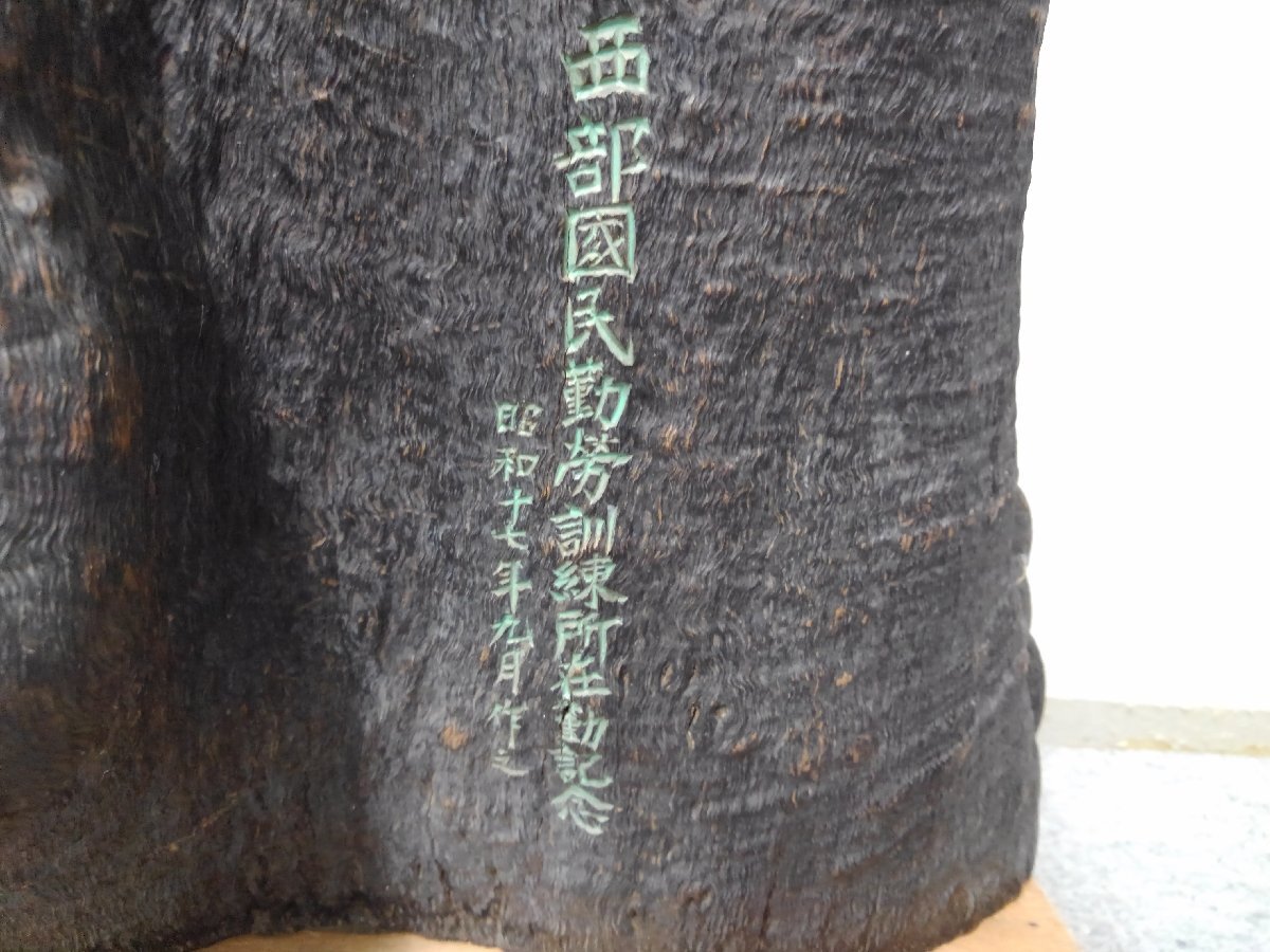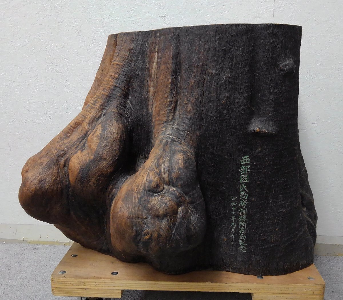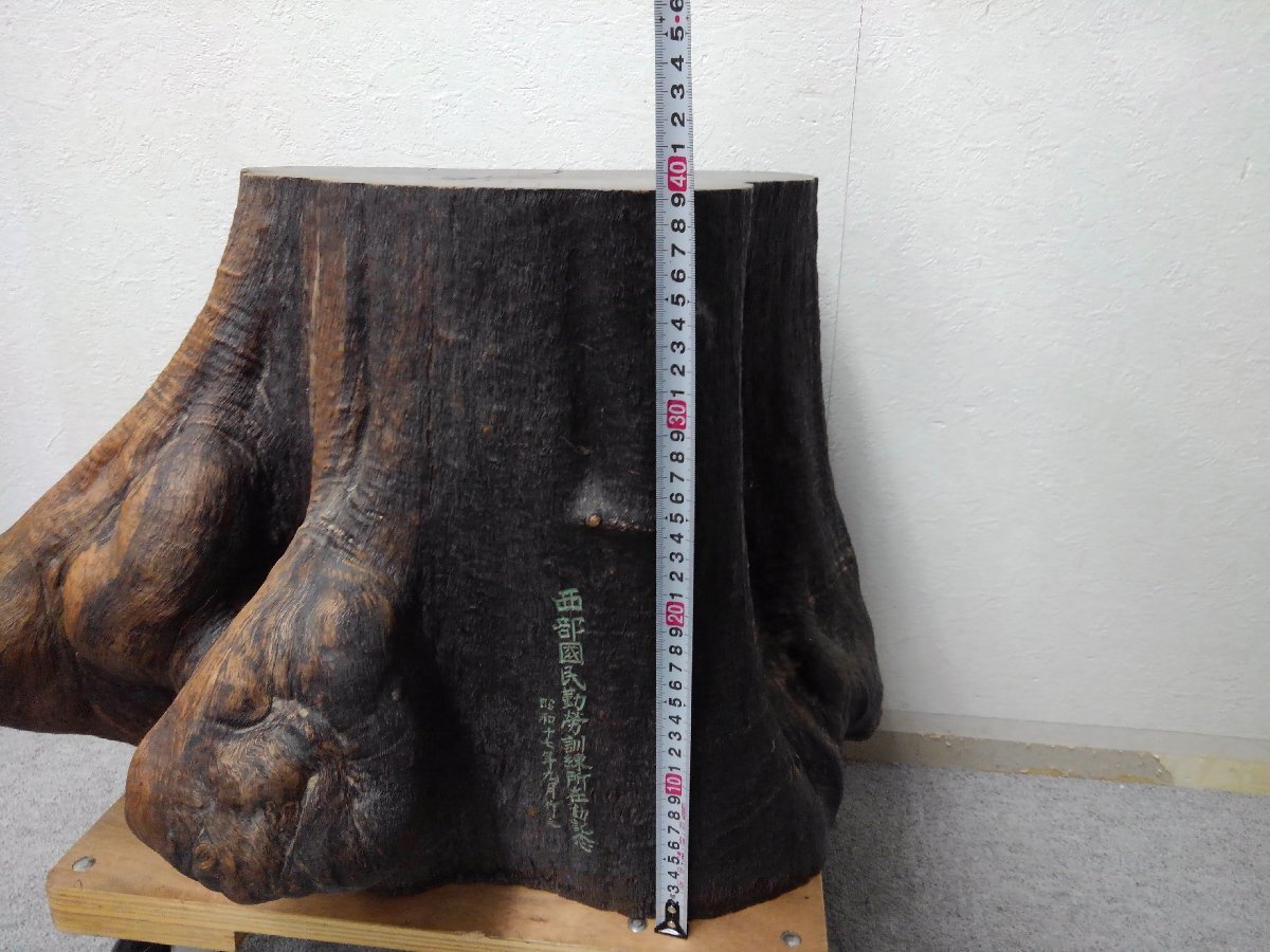 ★41―120★切り株 厚生省 西部國民勤労訓練所 記念品 昭和17年 重量約25㎏ 花台 置物 飾台 椅子 天然木 詳細不明 [160]