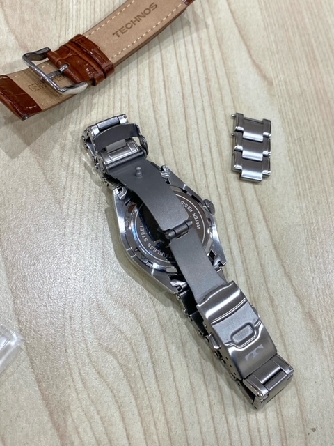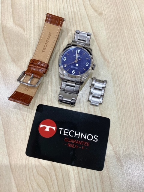 | 稼働品 TECHNOS テクノス 時計 腕時計 メンズ 36mm クォーツ ブルー文字盤 5気圧防水 T9B89SN 保管品 替えベルト付き | |||