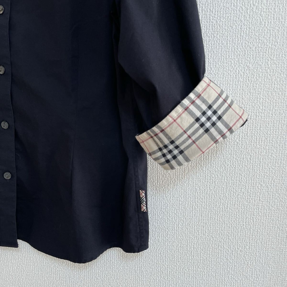 BURBERRY LONDON(バーバリーロンドン)長袖、七分袖シャツ/レディース Lサイズです。人気のノバチェック柄が袖裏とサイドに施された、上品で着回しやすい一着です。
