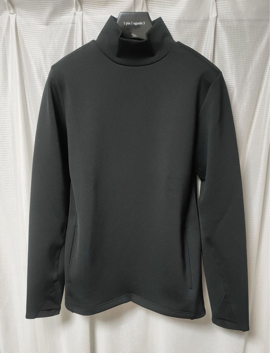 背リブ部分とサムホールに別生地を使用したモックネックロンT ストレッチ性を重視し、上質なリサイクルポリエステルと編立テクニックで嵩高感を重視した素材。