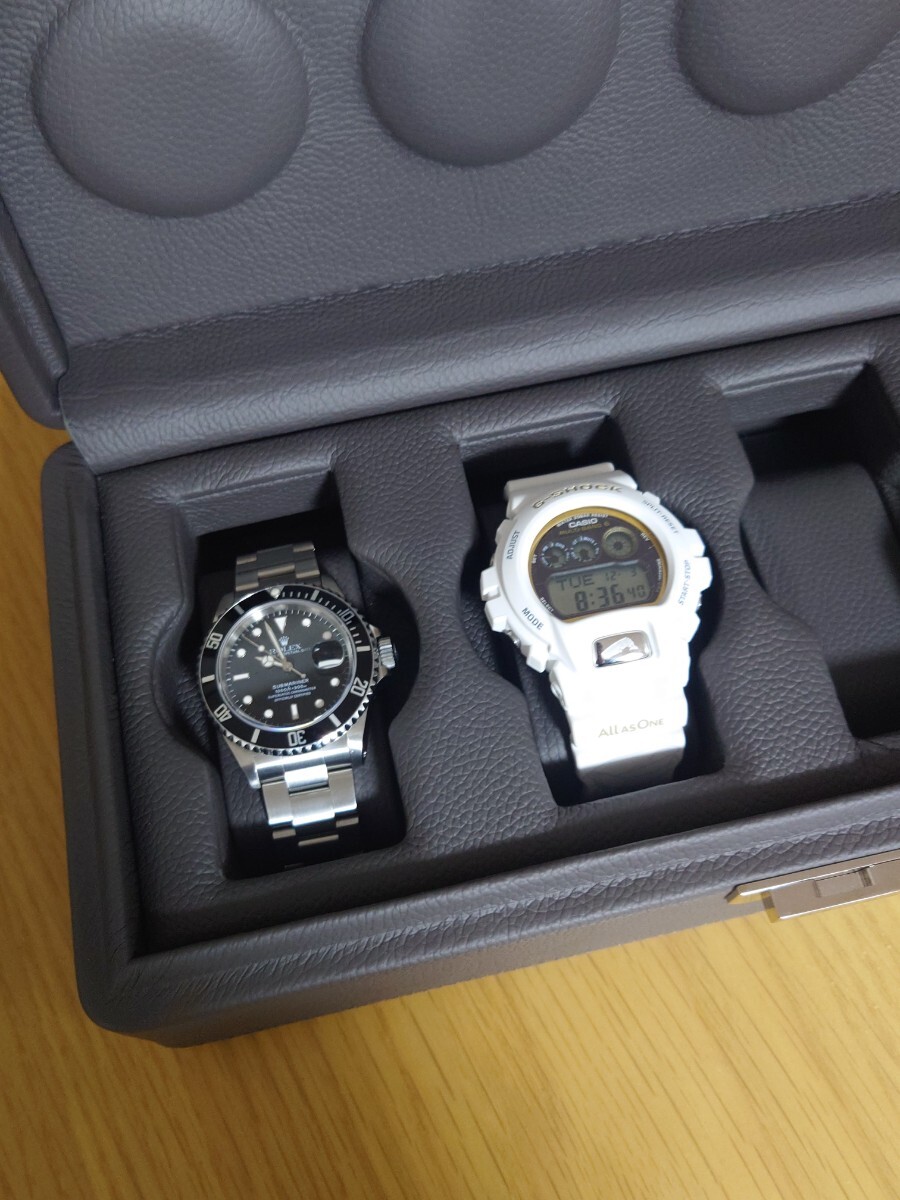 ご覧頂き有り難うございます。SCATOLA DEL TEMPO フルグレインレザー ウォッチボックスを購入しましたが、 収納数の多いケースへの変更に伴い出品する事にしました。使用期間も少なく美品です。参考の為(画像4.5の時計は付きません)G-SHOCKとサブマリナーも余裕で収納出来ます。また商品差し替え防止の為 返品及びクレームはご遠慮下さい。また評価の悪い方は入札を取り消す場合があります。