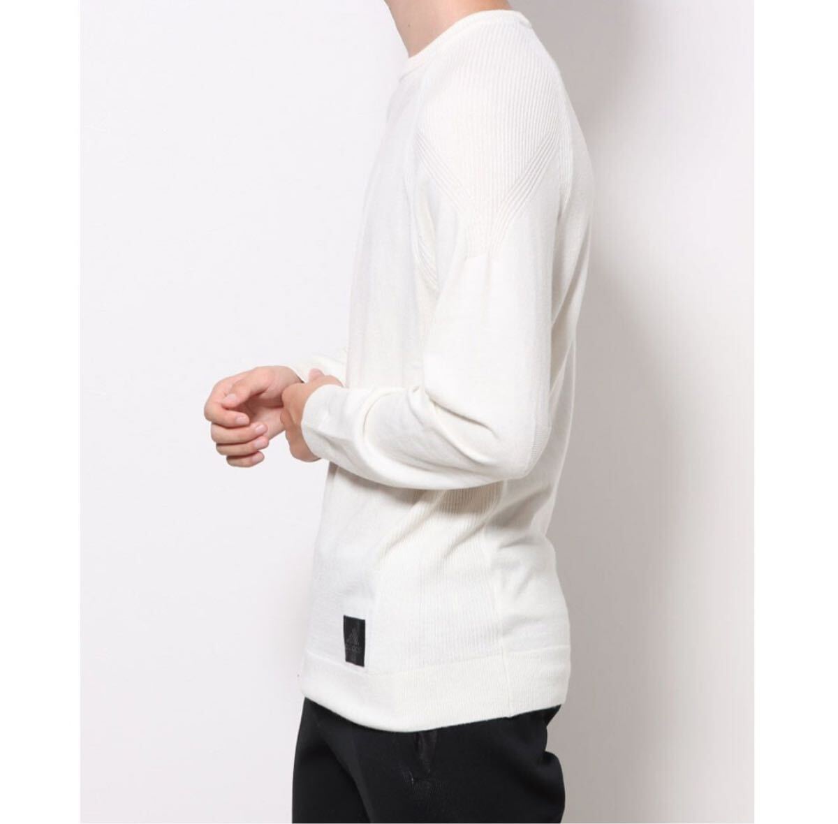 ジャガードパターンの設計により、セーターアイテムの運動性能を向上させた長袖クルーネックセーター。動きやすさが求められる肩から袖にかけての箇所には伸縮性に優れたリブ組織がデザインされています。