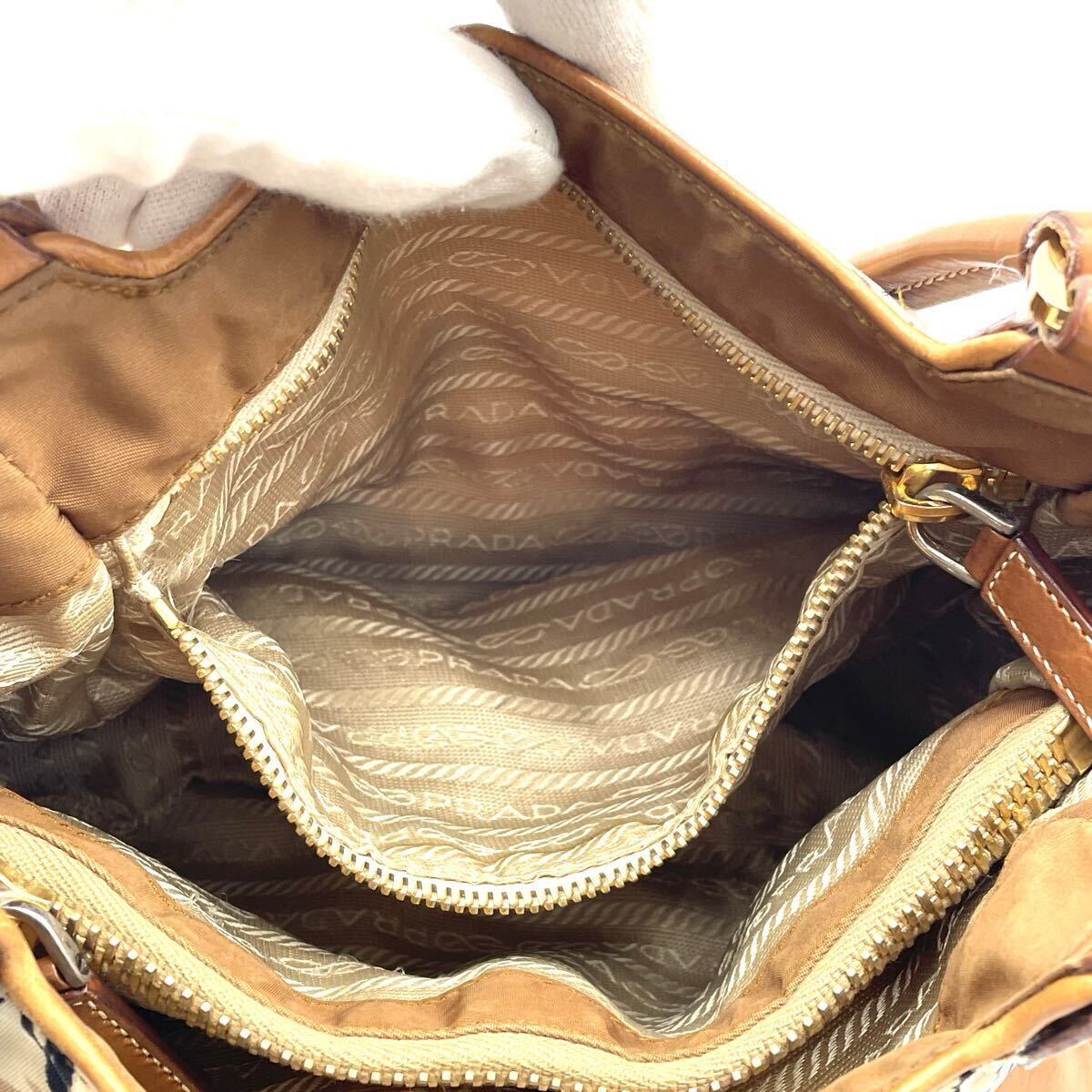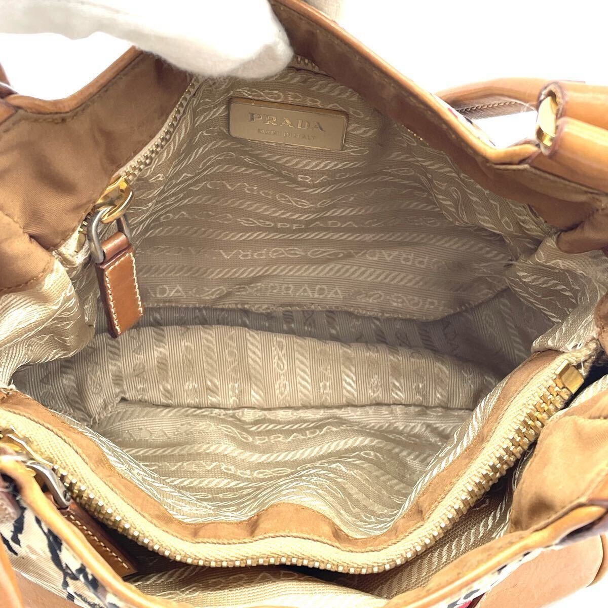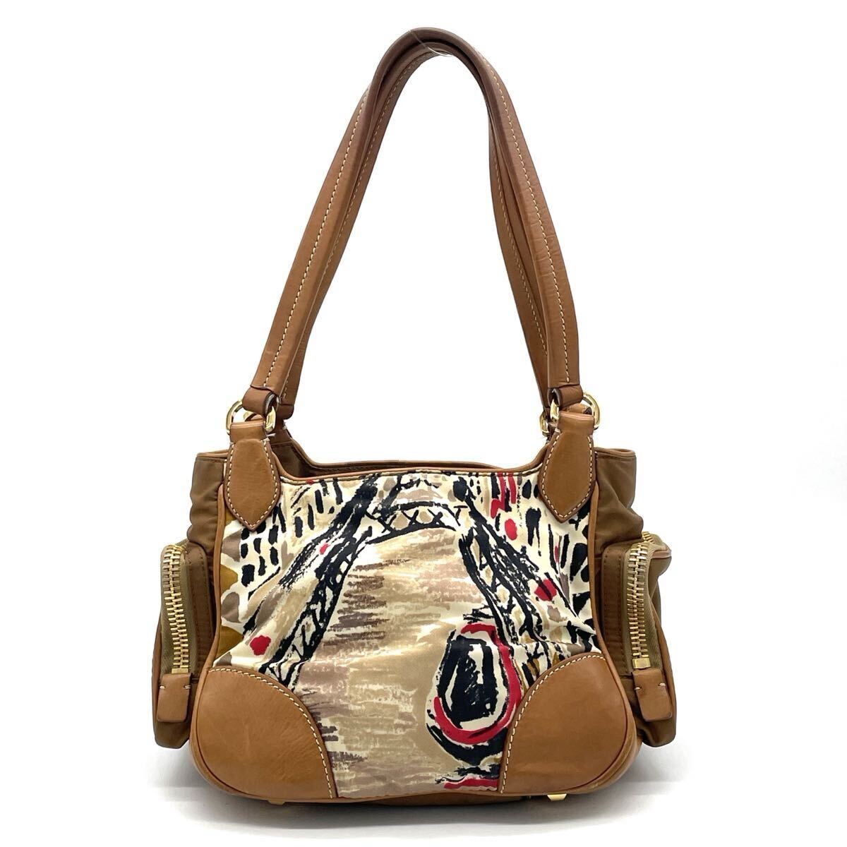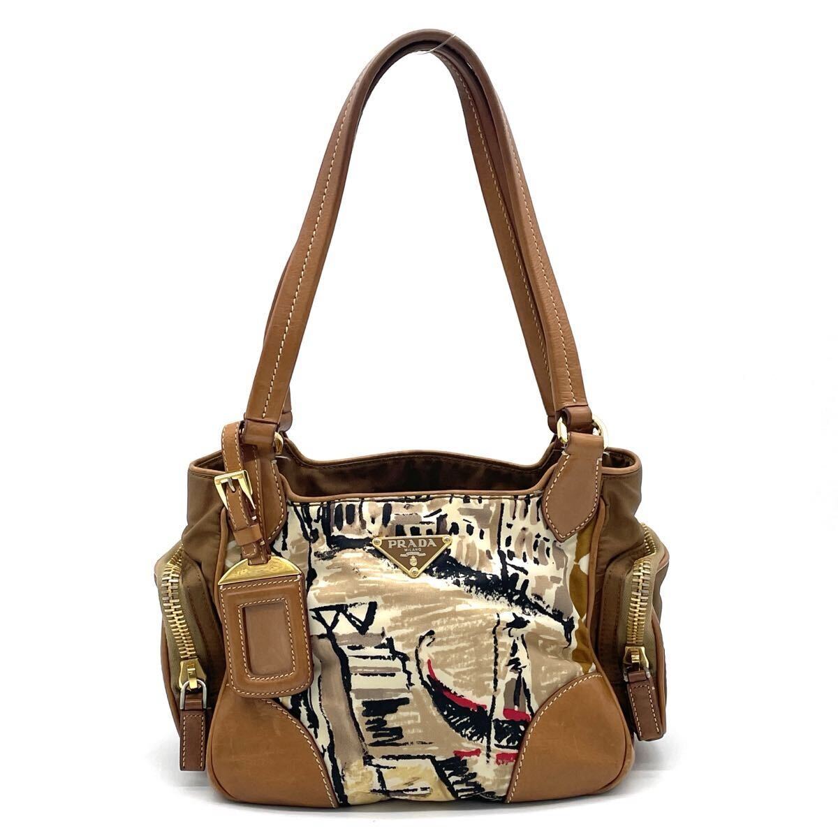 | PRADA テスートナイロン レザー トートバッグ ハンドバッグ ブラウン | |