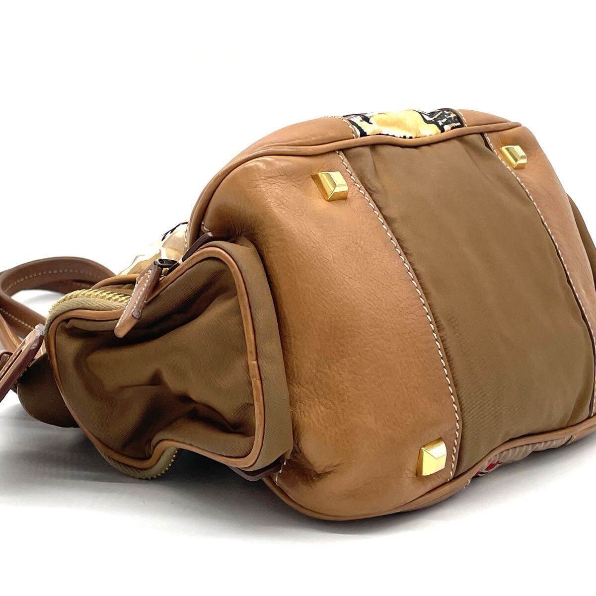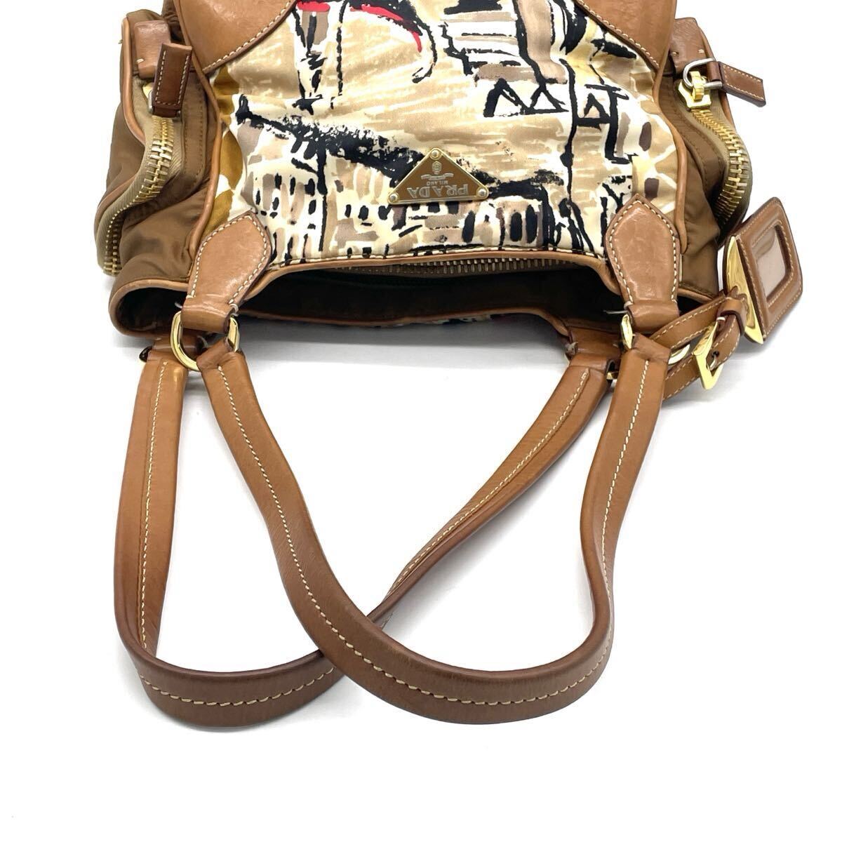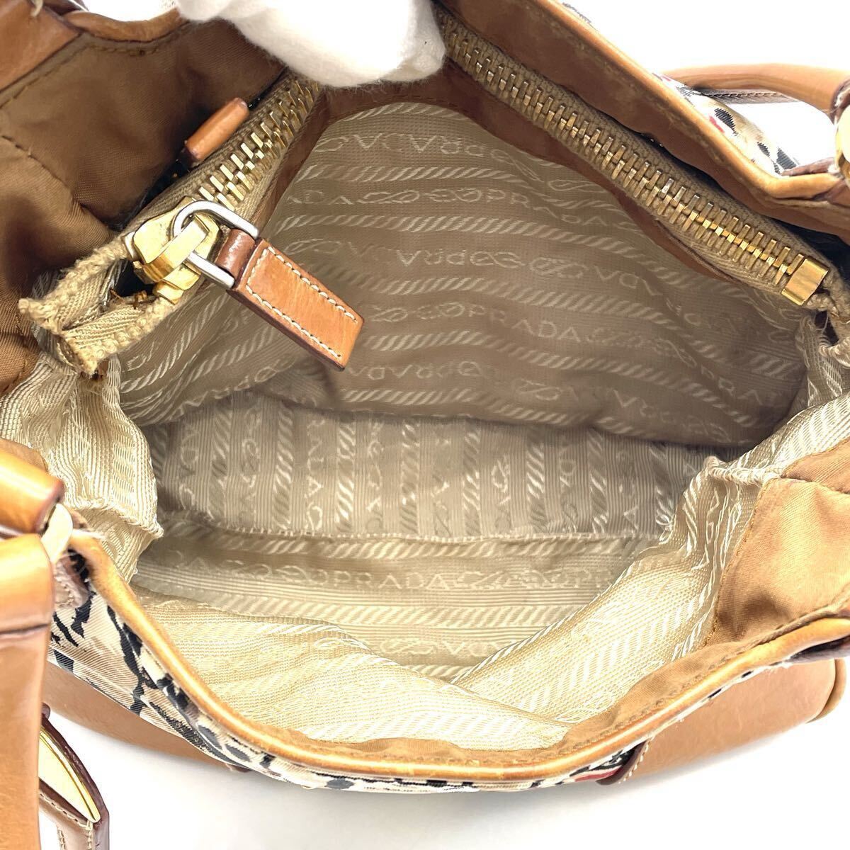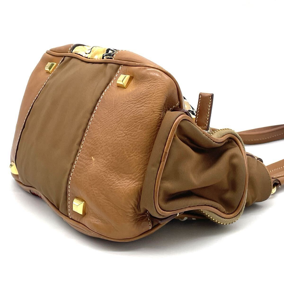 | PRADA テスートナイロン レザー トートバッグ ハンドバッグ ブラウン | |