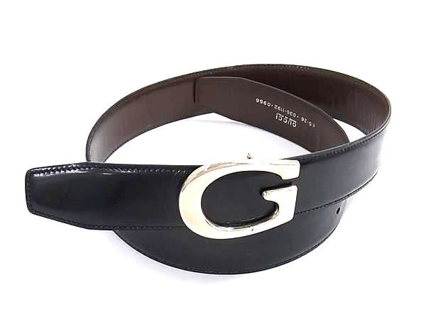 1円 GUCCI グッチ 036 1192 0956 レザー シルバー金具 ベルト 表記サイズ 65・26 メンズ ブラック系 GA6502