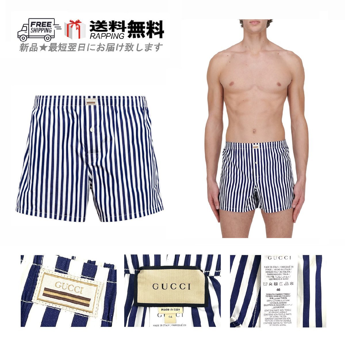 L825-46.. GUCCI グッチ ボクサーパンツ 下着 アンダーウェア インナー ストライプ コットン ポプリン ロゴ イタリア製 ★ 9296 ブルー