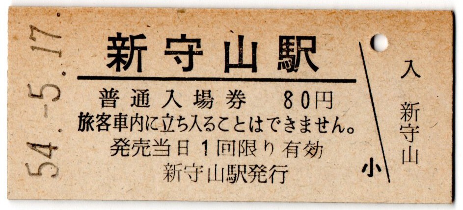 JR東海エリア 新守山駅(中央本線)入場券 80円券