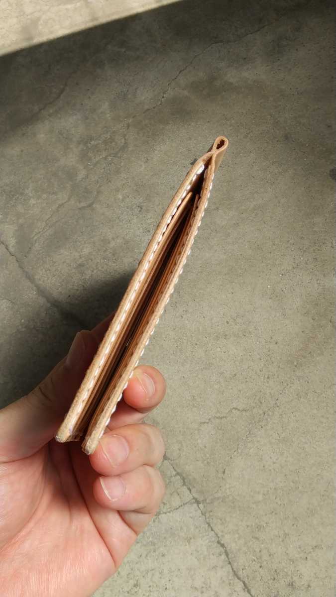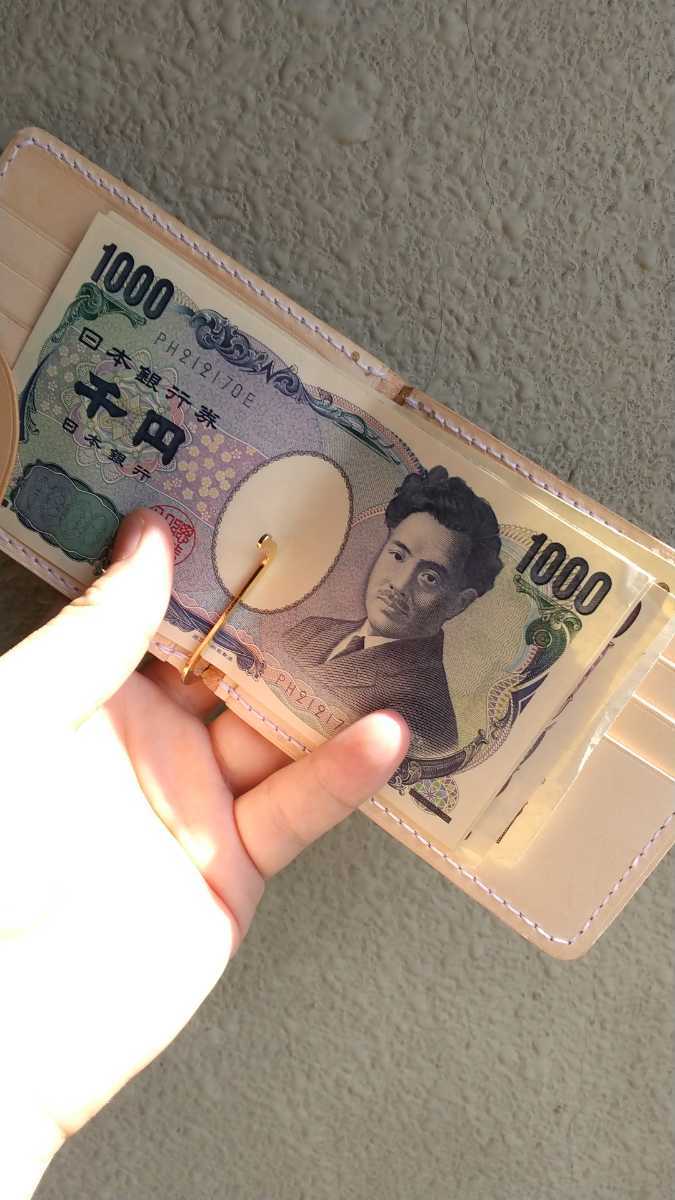 お札を、写真最後の様にカードポケットの裏側に入れてしまう事も出来ます。複数のお札を挟んでる場合は裏のフリーポケット片側のみ裏に入れ込んで使えば複数のお札を数える事も出来て便利です。