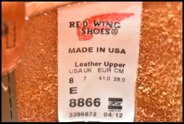 【8E 美品 12年】レッドウィング 8866 ペコス 赤茶 オロラセット プルオン クッションソール ブーツ redwing pecos HOPESMORE