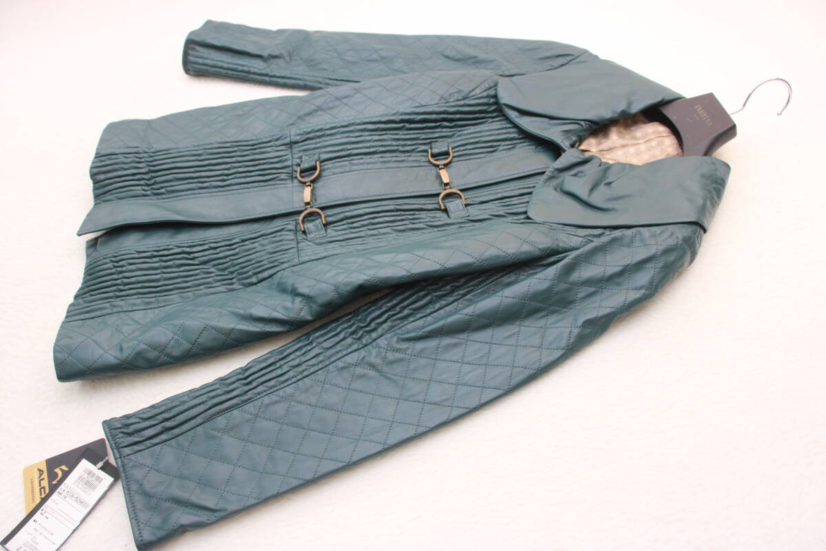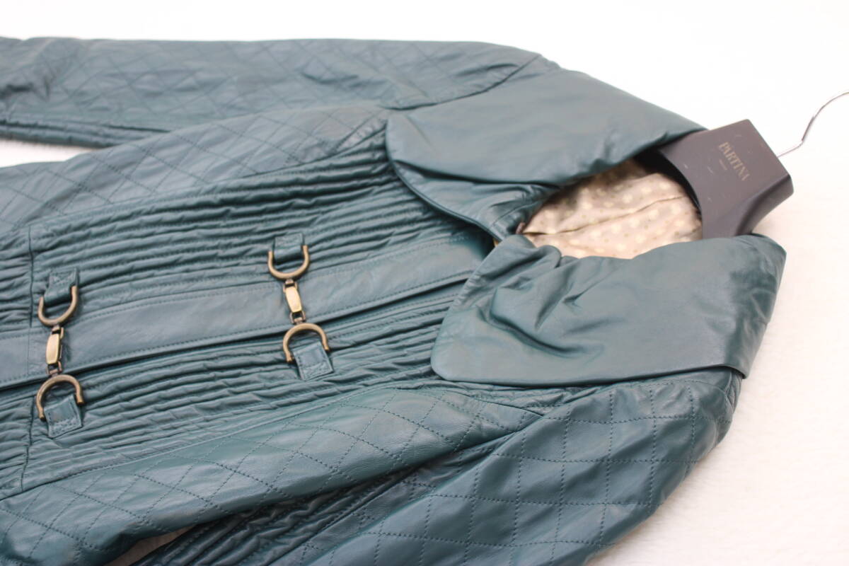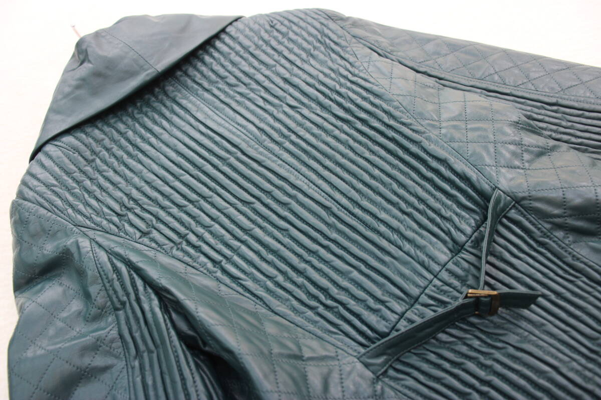 6707 新品タグ付き 高級羊革レザー中綿ロングジャケット ブルー9号サイズ