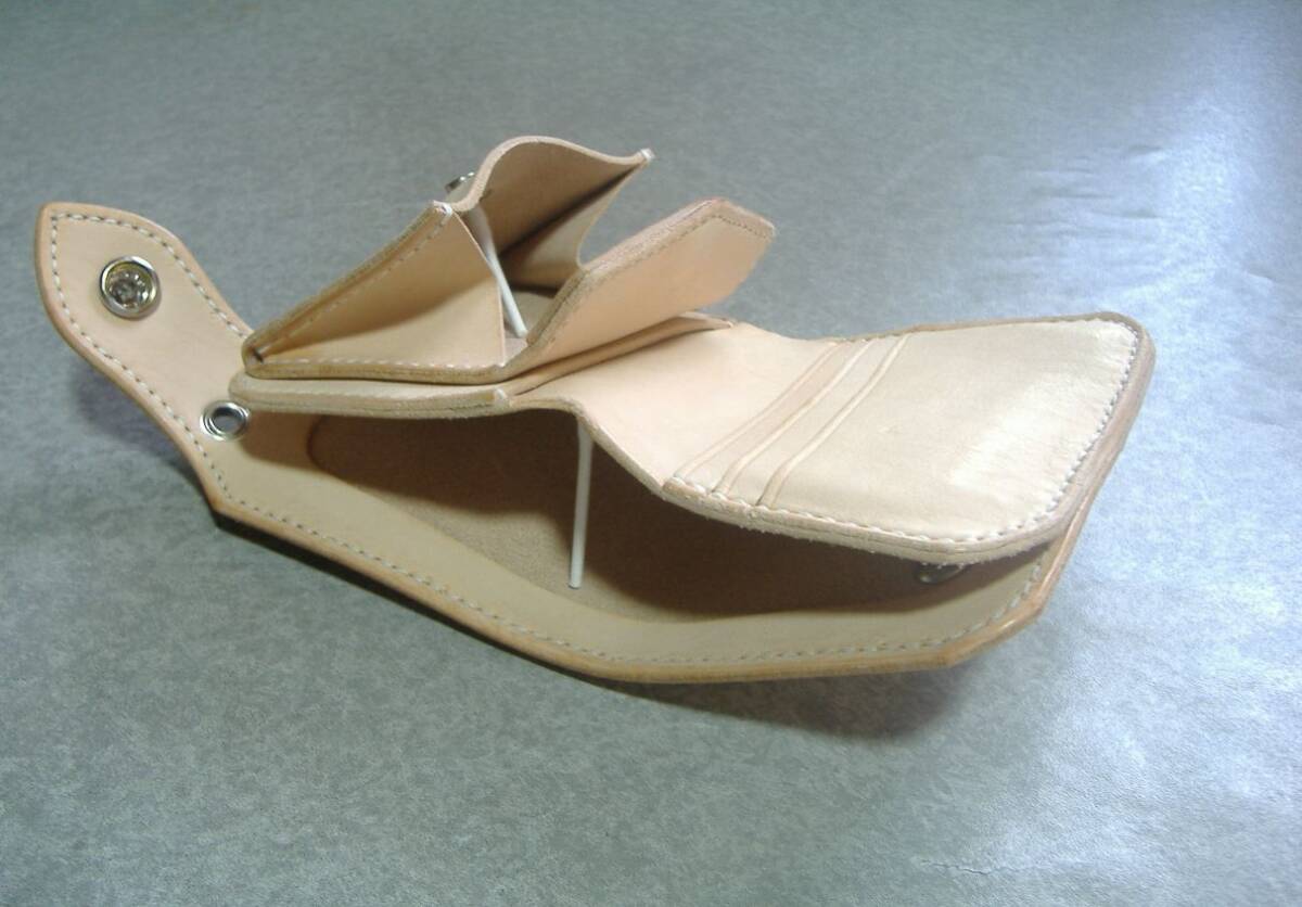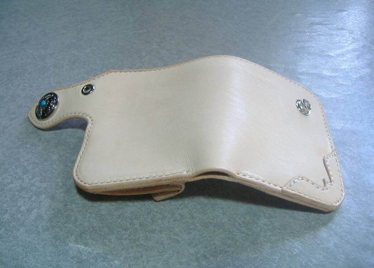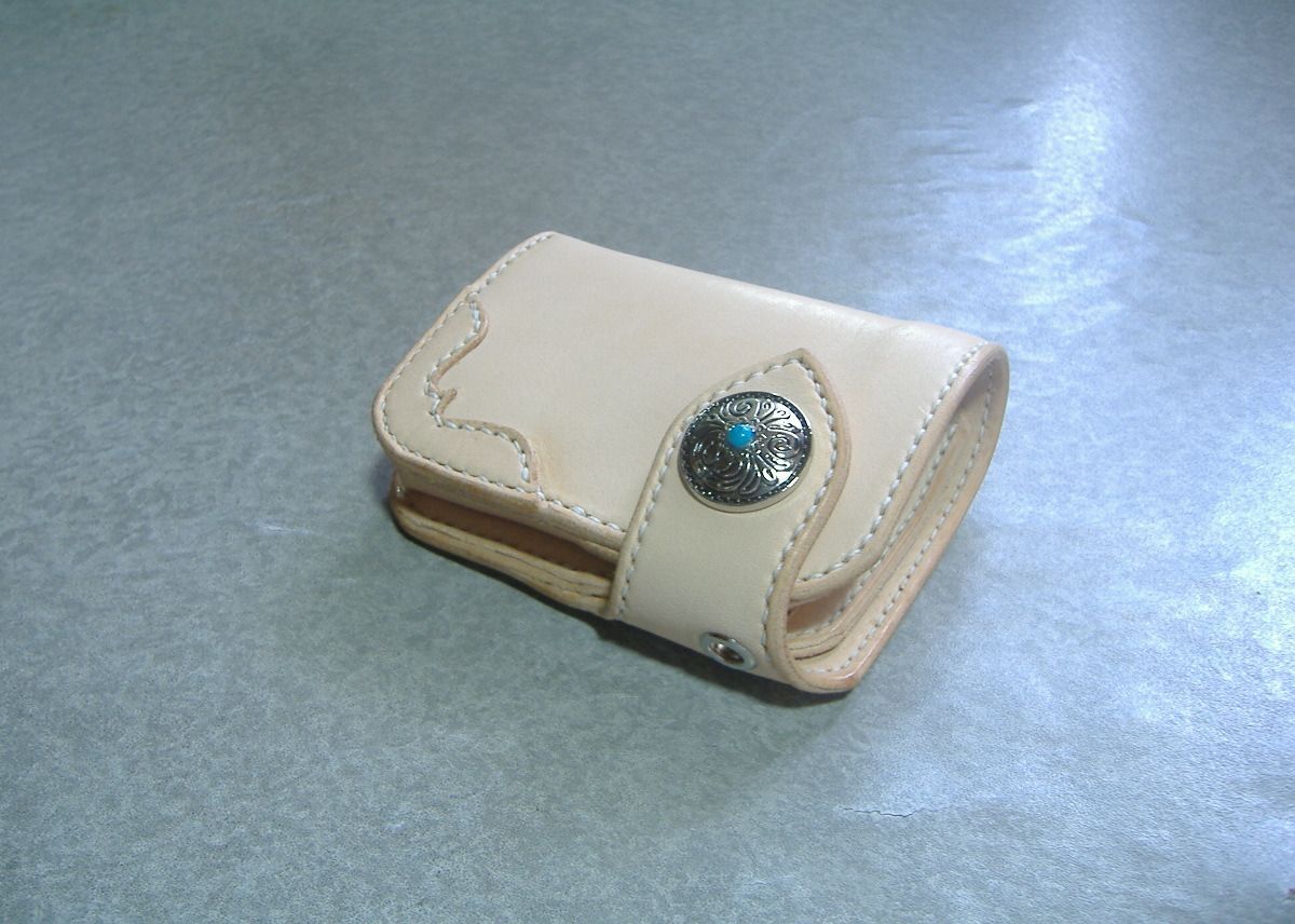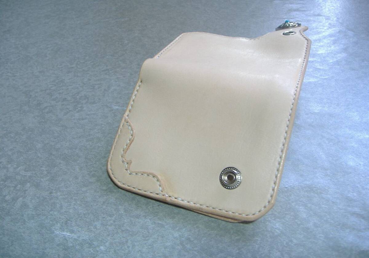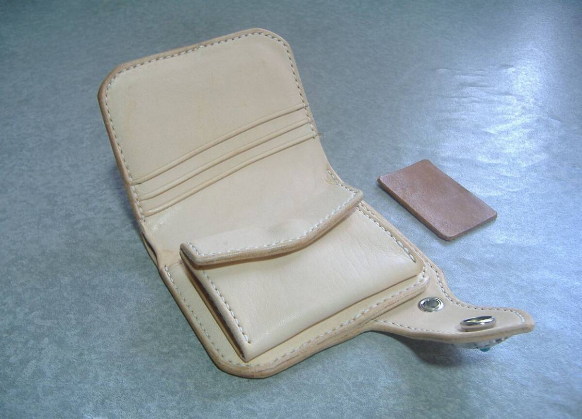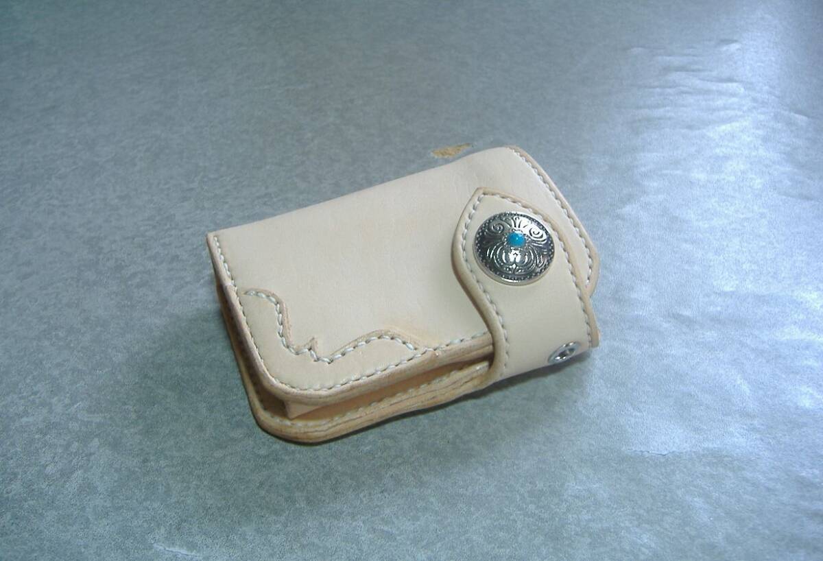 ドラム鞣しのヌメ革を使い、手縫いで製作しましたハーフウォレットです。