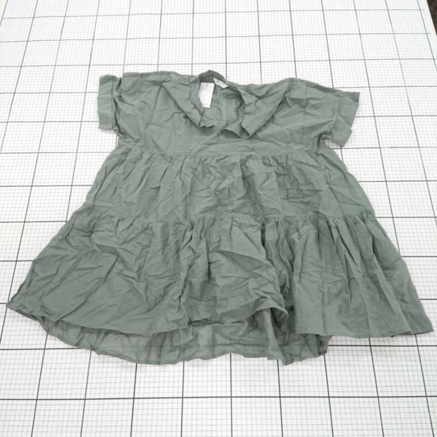 ◇ ⊂ 未使用 Samansa Mos2 blue タグ付き 半袖 スキッパーティアードチュニック サイズF グリーン レディース メンズ E