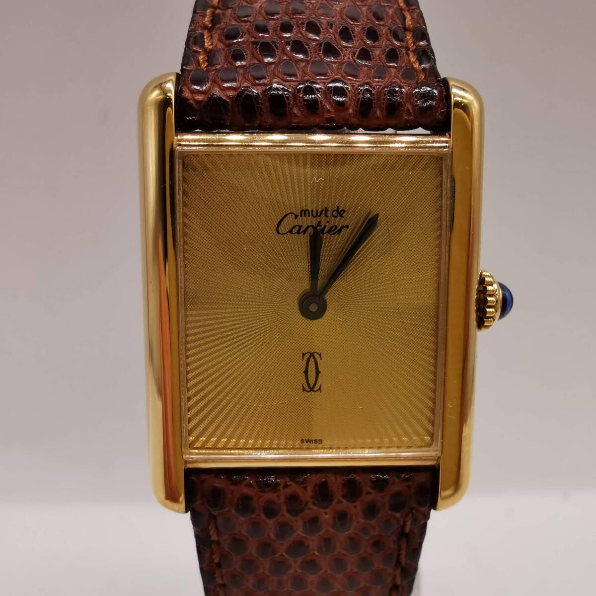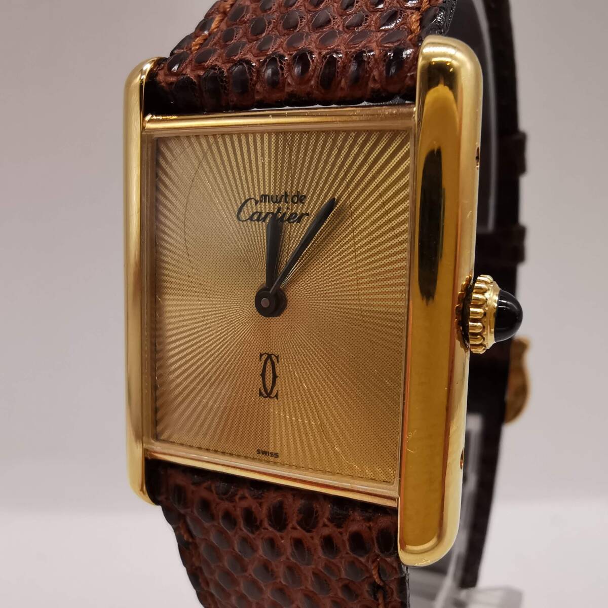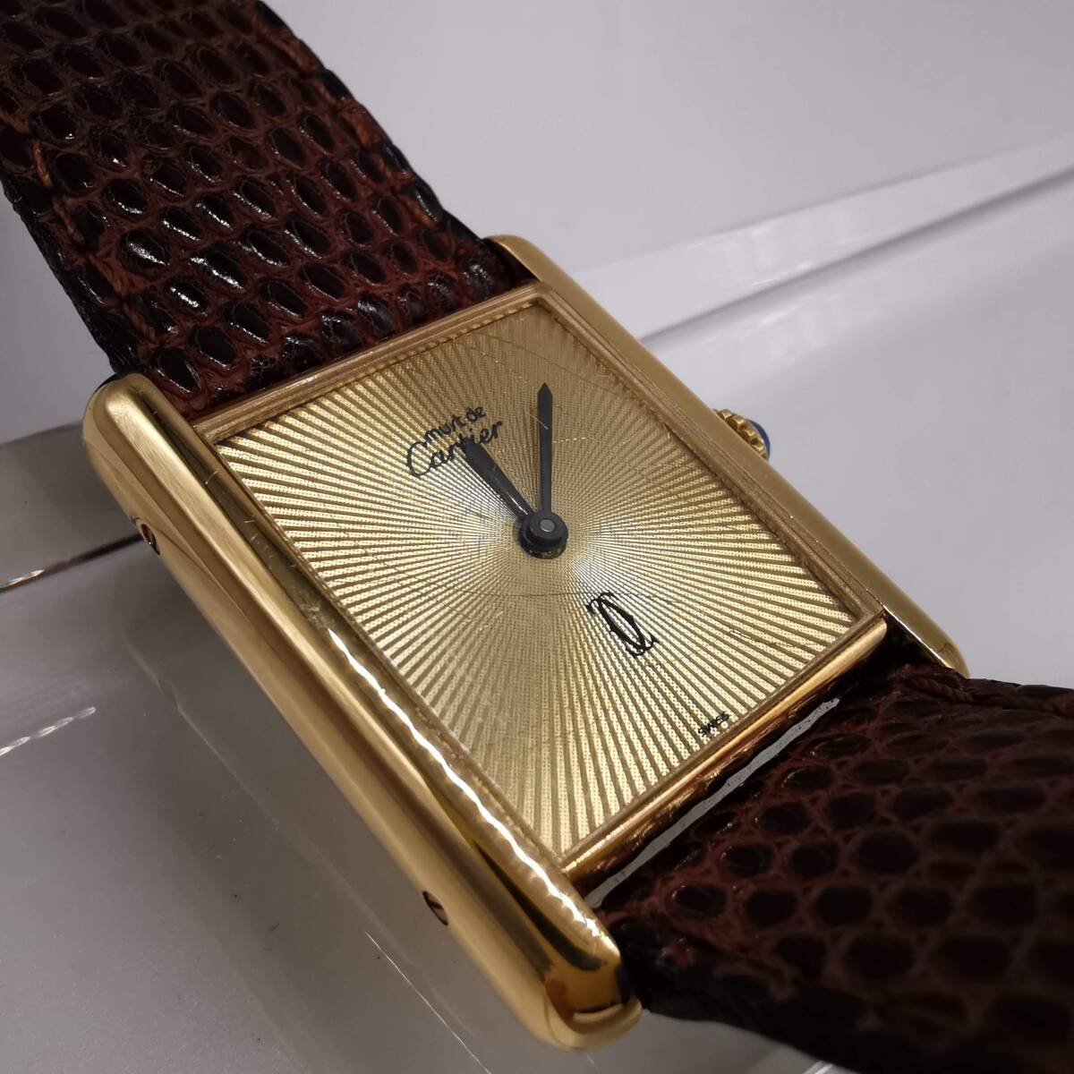 【商品コード】171008S85-1118S 【商品名】■Cartier カルティエ■マストタンク シルバー/SV925 ゴールドカラー 手巻き ギョーシェ LM メンズ 腕時計 ヴィンテージ 【サイズ】ケース幅約23mm(リュウズ含まず) ※多少の誤差はご容赦下さいませ。 【素材】シルバー925/ゴールドメッキ20ミクロン 【カラー】ゴールド文字盤、茶革ベルト(純正) 【付属品】箱、ギャランティカード 【状態】ほぼ着用感のないお品です。お譲りいただいた方も使用はしていないとのことでした。革ベルトも着用感は見られませんが、巻き付けての収納保管の為、湾曲はしています。ケースや風防に傷は見られませんでした。年代物の為か、文字盤にヒビのような跡が見られます。時刻合わせ・日付送りに問題は見られず、巻き上げし、動かした状態で6時間以上の確認を致しましたが出品時(R7.11月)の動作はほぼ正常に見えます(正確な時刻までは確認しておりません、また将来にわたっての動作保証は出来かねます。)。外装に特に目立つキズやダメージは見られず、風防にも特に目視でキズは見当たりません。その他中古品の為、経年・保管に伴うキズ、汚れ、金属のくすみ、ブレスのヨレ等が見受けられます。裏ブタを開けて時計内部は確認しておりません現状品として出品致しますので、予めご理解頂き、画像及び説明文にてご判断下さいませ。 【注意事項】商品到着後は早めにご開封いただき、商品のご確認をお願いします。異なる商品が送られてきた、や商品説明と異なる状況、商品説明にない破損・欠品の場合、商品到着より2週間以内にご連絡ください。それ以降のご連絡の場合はいかなる理由があっても対応できかねます。また、上記に伴い返品返金対応となる場合、受け取りました商品代金及び送料分以上の諸経費はお支払いしかねますので予めご了承下さいませ。 海外などに転送される輸入代行の方などは、商品のご確認を海外等に転送される前に商品のご確認をしていただくなど、お願い申し上げるとともに、ご注意下さいますようお願い致します。 ※気になる点がございましたら質問欄よりご質問くださいませ。神経質な方のご入札はご遠慮いただき、ノークレーム・ノーリターンでのご入札をお願いいたします。 ※特に大きな傷・や汚れがある場合、写真にて掲載するよう心掛けておりますが、中古品の場合、使用感や多少の傷・汚れのあることをご理解ください。 ※ご入札の際はお支払い方法や発送方法、ご注意事項をよくご覧のうえご入札くださいますようお願い申し上げます。 |