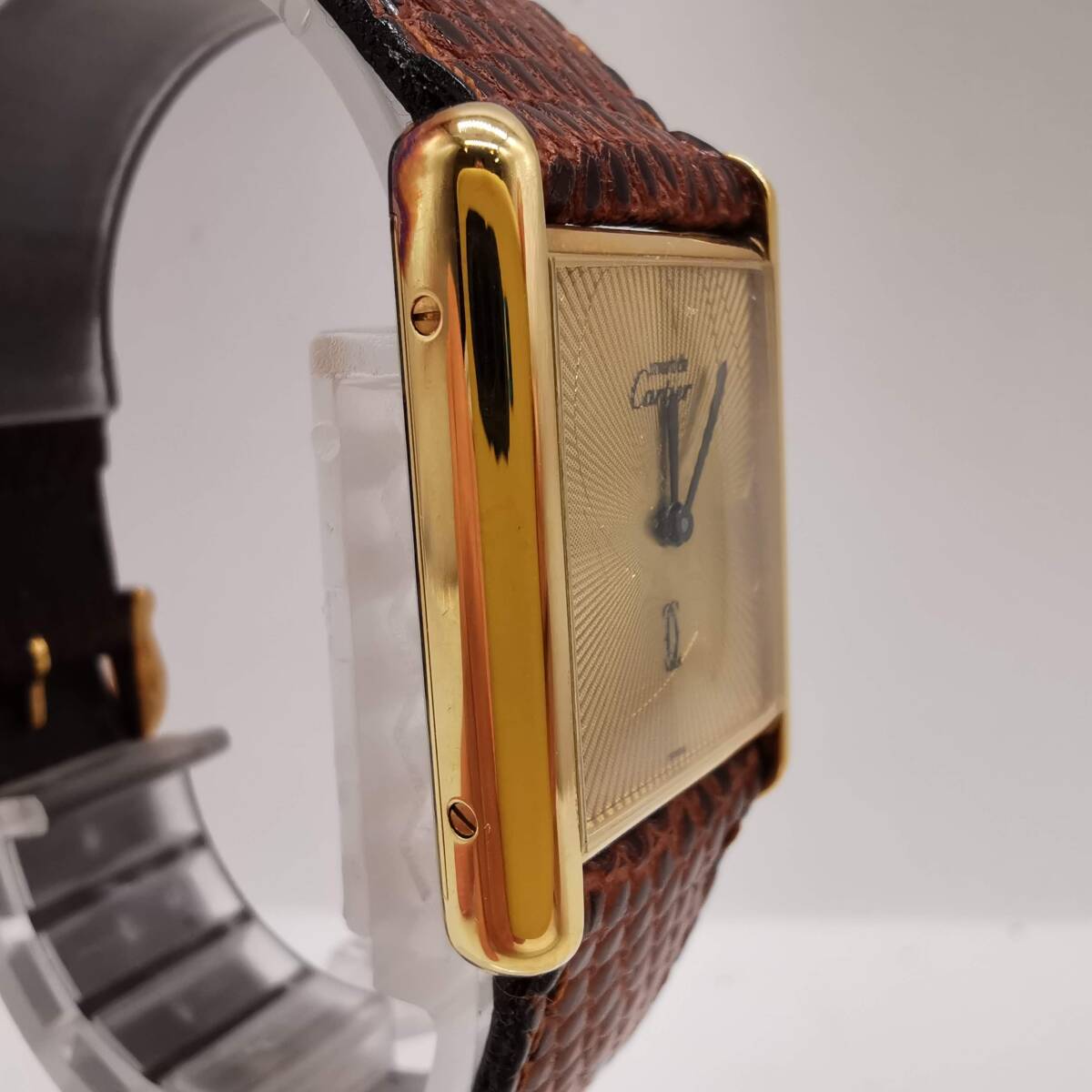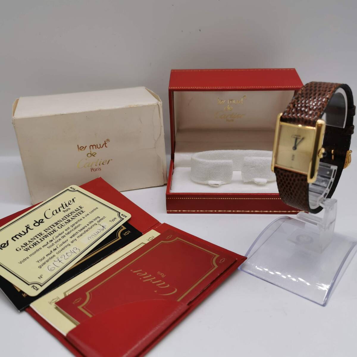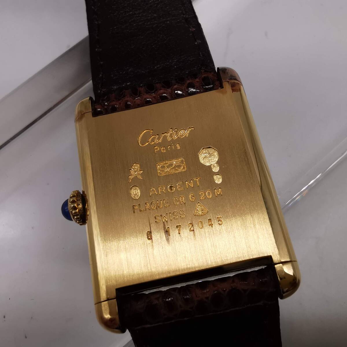 【商品コード】171008S85-1118S 【商品名】■Cartier カルティエ■マストタンク シルバー/SV925 ゴールドカラー 手巻き ギョーシェ LM メンズ 腕時計 ヴィンテージ 【サイズ】ケース幅約23mm(リュウズ含まず) ※多少の誤差はご容赦下さいませ。 【素材】シルバー925/ゴールドメッキ20ミクロン 【カラー】ゴールド文字盤、茶革ベルト(純正) 【付属品】箱、ギャランティカード 【状態】ほぼ着用感のないお品です。お譲りいただいた方も使用はしていないとのことでした。革ベルトも着用感は見られませんが、巻き付けての収納保管の為、湾曲はしています。ケースや風防に傷は見られませんでした。年代物の為か、文字盤にヒビのような跡が見られます。時刻合わせ・日付送りに問題は見られず、巻き上げし、動かした状態で6時間以上の確認を致しましたが出品時(R7.11月)の動作はほぼ正常に見えます(正確な時刻までは確認しておりません、また将来にわたっての動作保証は出来かねます。)。外装に特に目立つキズやダメージは見られず、風防にも特に目視でキズは見当たりません。その他中古品の為、経年・保管に伴うキズ、汚れ、金属のくすみ、ブレスのヨレ等が見受けられます。裏ブタを開けて時計内部は確認しておりません現状品として出品致しますので、予めご理解頂き、画像及び説明文にてご判断下さいませ。 【注意事項】商品到着後は早めにご開封いただき、商品のご確認をお願いします。異なる商品が送られてきた、や商品説明と異なる状況、商品説明にない破損・欠品の場合、商品到着より2週間以内にご連絡ください。それ以降のご連絡の場合はいかなる理由があっても対応できかねます。また、上記に伴い返品返金対応となる場合、受け取りました商品代金及び送料分以上の諸経費はお支払いしかねますので予めご了承下さいませ。 海外などに転送される輸入代行の方などは、商品のご確認を海外等に転送される前に商品のご確認をしていただくなど、お願い申し上げるとともに、ご注意下さいますようお願い致します。 ※気になる点がございましたら質問欄よりご質問くださいませ。神経質な方のご入札はご遠慮いただき、ノークレーム・ノーリターンでのご入札をお願いいたします。 ※特に大きな傷・や汚れがある場合、写真にて掲載するよう心掛けておりますが、中古品の場合、使用感や多少の傷・汚れのあることをご理解ください。 ※ご入札の際はお支払い方法や発送方法、ご注意事項をよくご覧のうえご入札くださいますようお願い申し上げます。 |