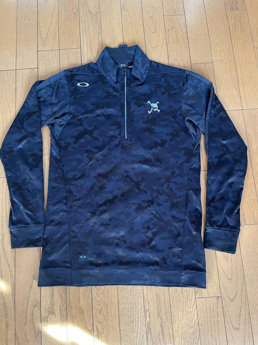 OAKLEY オークリー ハーフジップ 長袖ポロシャツ スカル 総柄 ブラック系