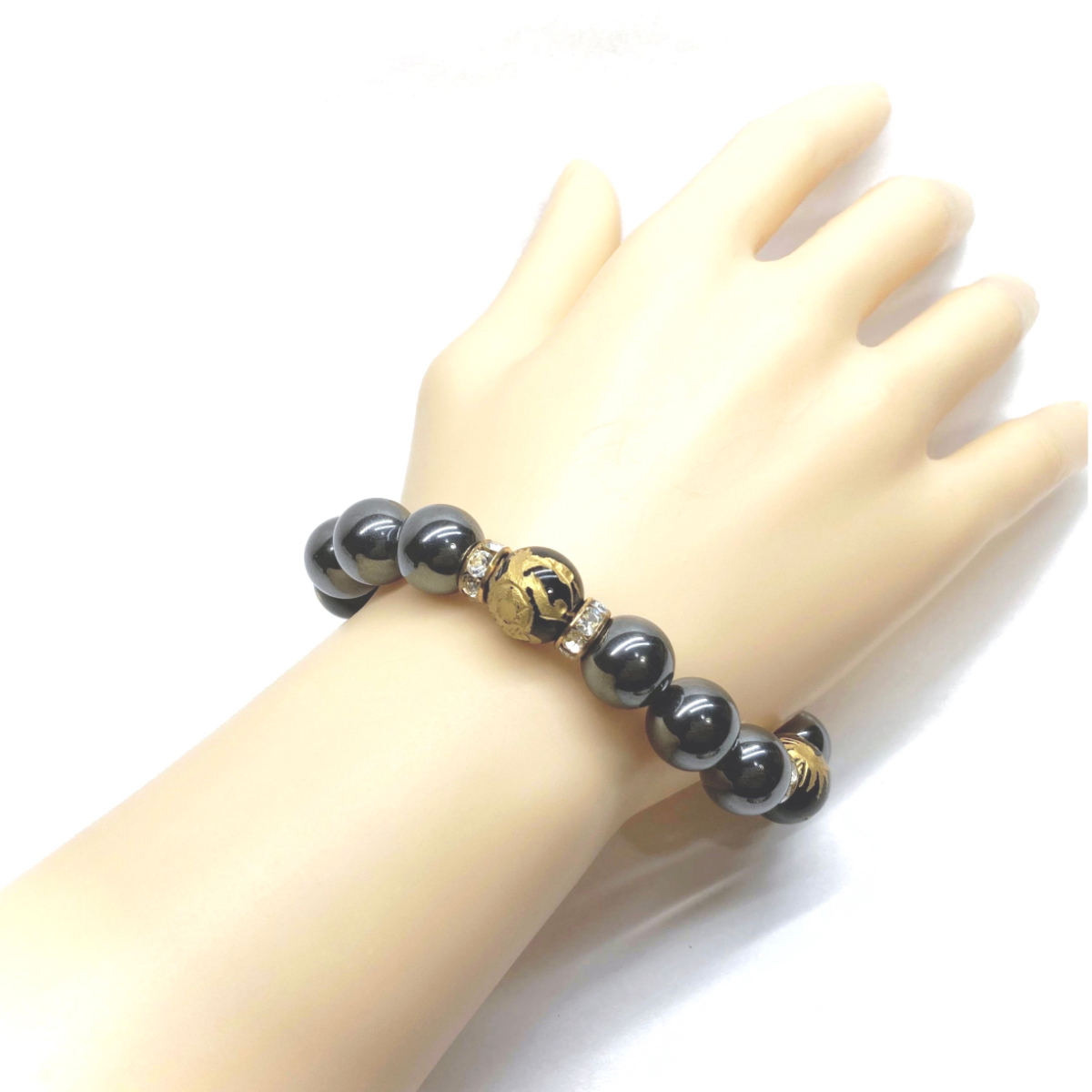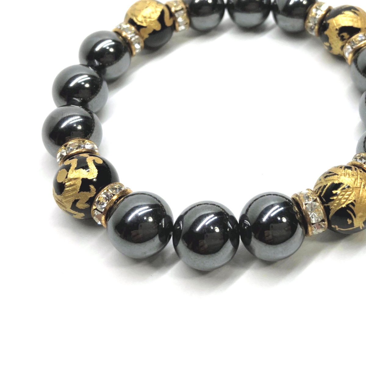 四神獣金彫オニキス×ヘマタイト 12mm パワーストーン ブレスレット天然石 青龍 白虎 玄武 朱雀 運気上昇 開運 金運 お守り 四神相応 G