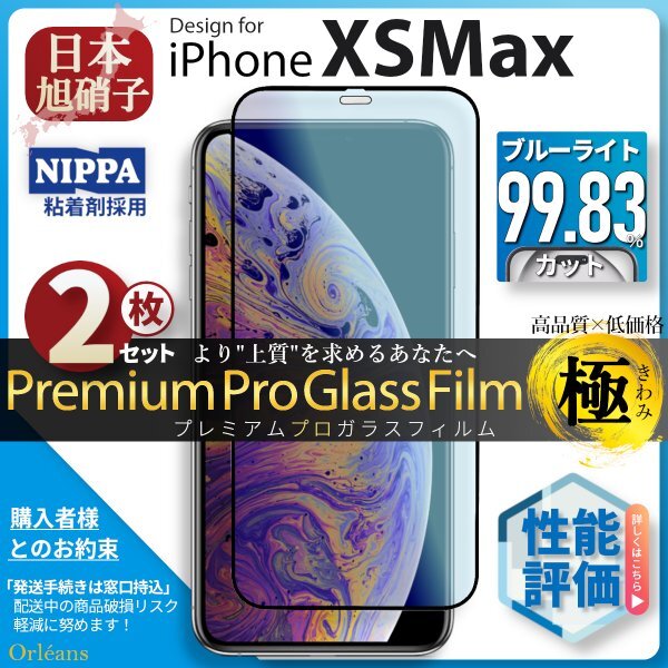 iPhone XS Max ブルーライトカット 強化ガラスフィルム 超得2セット 旭硝子 全面保護 自動吸着 保護フィルム 液晶保護フィルム