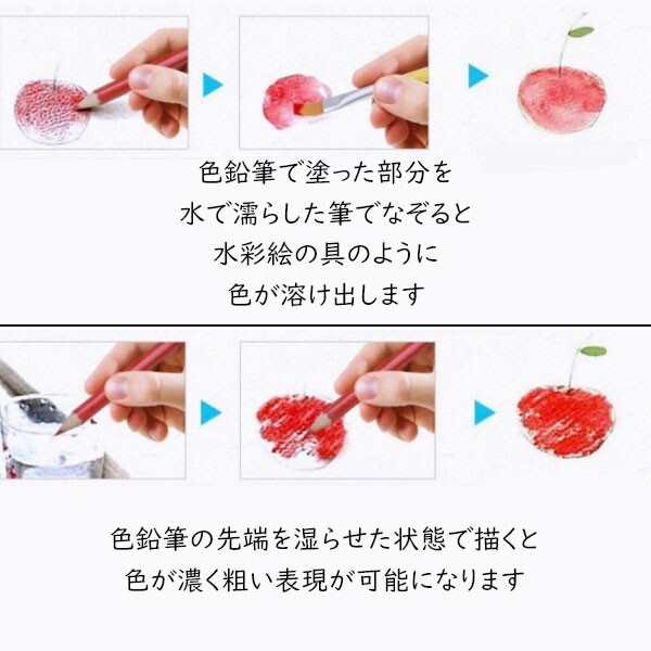 | 商品説明 | 色彩豊かな48色の水彩色鉛筆セット 水を付ける事で水彩画の絵の具のように使える色えんぴつ 付属物 水彩用の小筆2本 鉛筆削り 収納ケース 子供用のプレゼントとしてもオススメ 塗り絵の幅が広がります