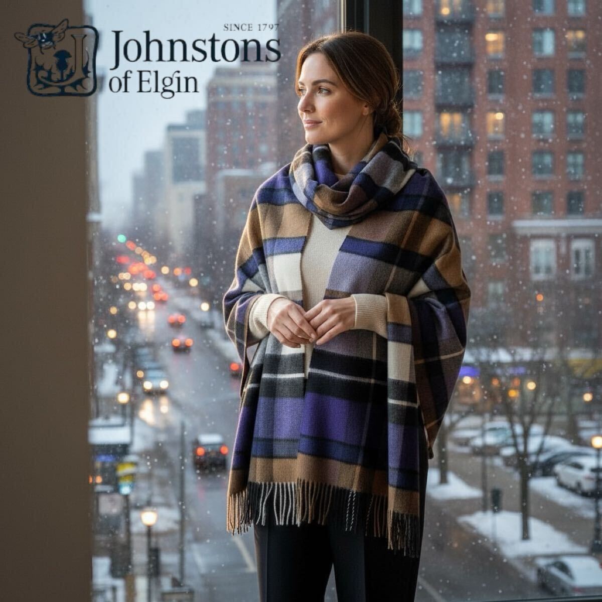 スコットランド最古の生地メーカー、**Johnstons of Elgin(ジョンストンズ)**のカシミヤ100%大判ストールでございます。