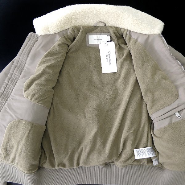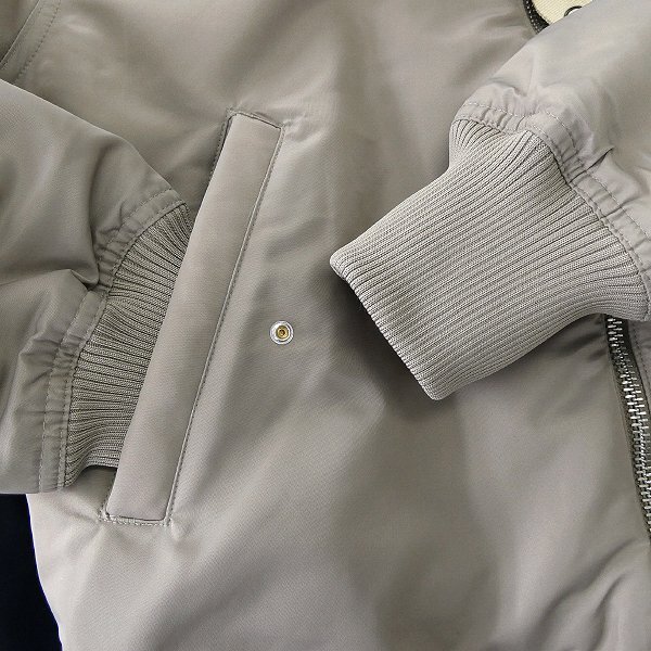 防寒性に優れた裏フリース仕立て・中わた入りのジップアップブルゾン。 ボア襟や袖ジップ、フラップポケットなどを特徴としたミリタリーライクな一着です。 身頃はナイロン生地を使用し、袖口と裾はリブ仕立て。 ロゴ入りのストラップがスタイリッシュなアクセントになっています。 カジュアルなデニムスタイルとも相性抜群です。 【デザイン】 ・フロントはシングルジップ ・総裏地(中綿入り) ・背面アクションプリーツ ・衿のボアは取り外し不可能 |