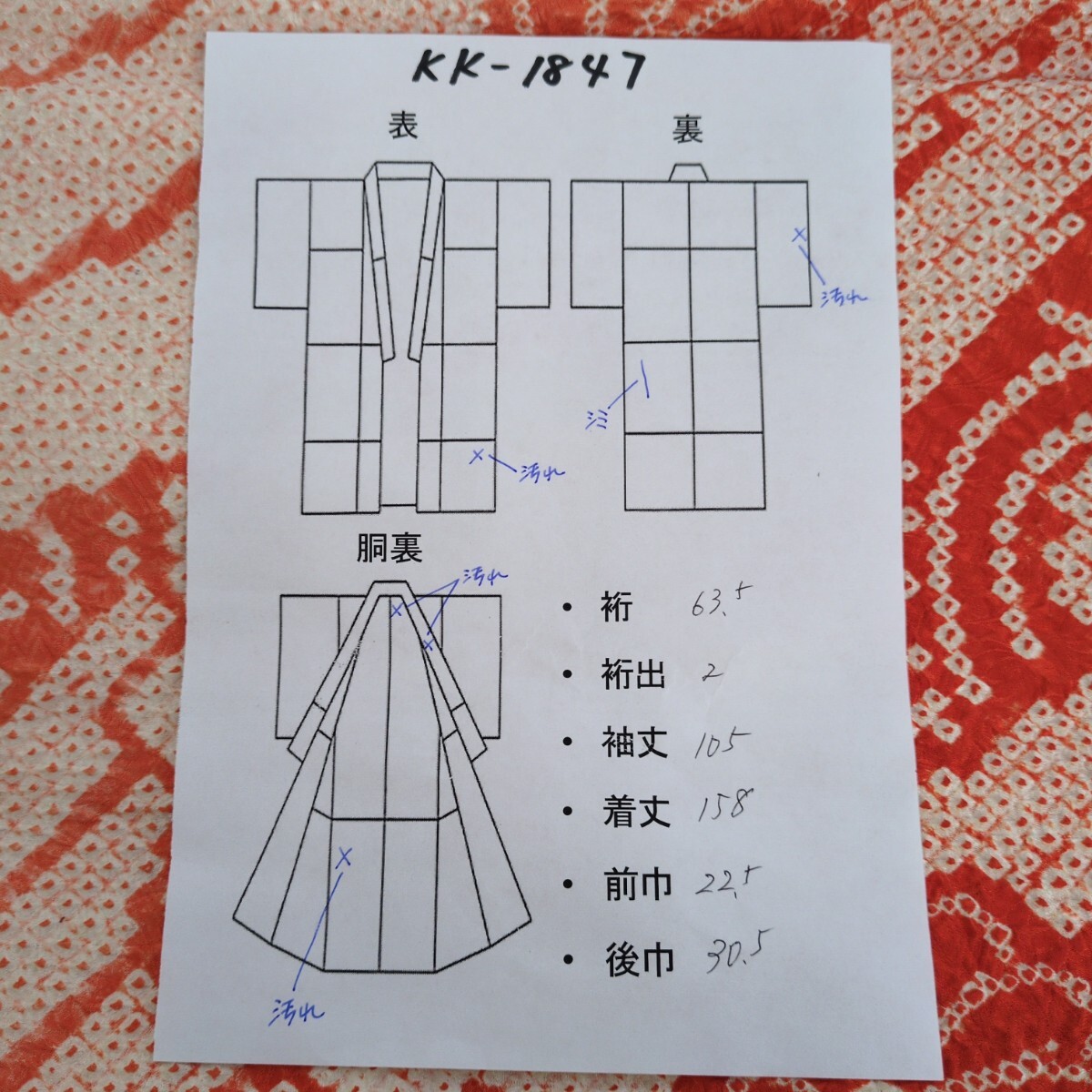 【楓】総絞り 振袖 正絹 鹿子絞り 袷 着物 KK-1847