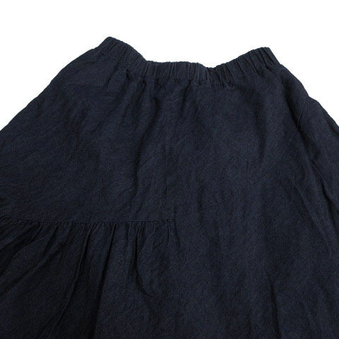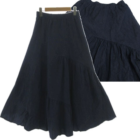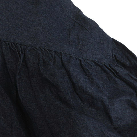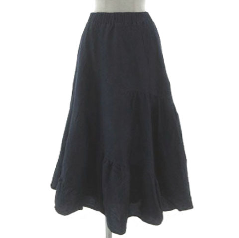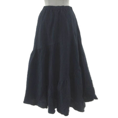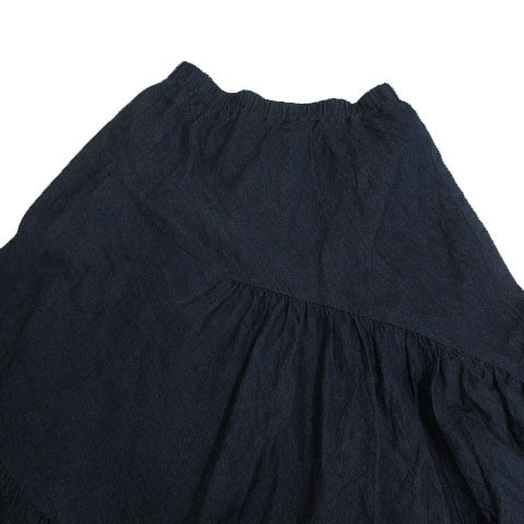 アクシーズファム axes femme ティアードロングスカート TS291X28 ダンガリー フレア ウエストゴム コットン ネイビー 紺 M