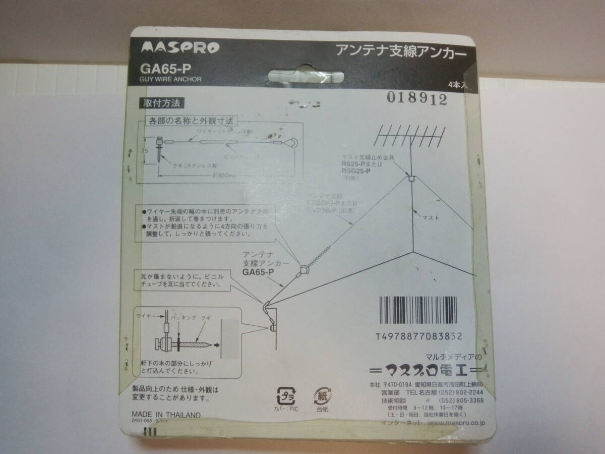 ☆マスプロ/支線アンカー/GA65-P4本入/開封済み未使用の長期保管品☆